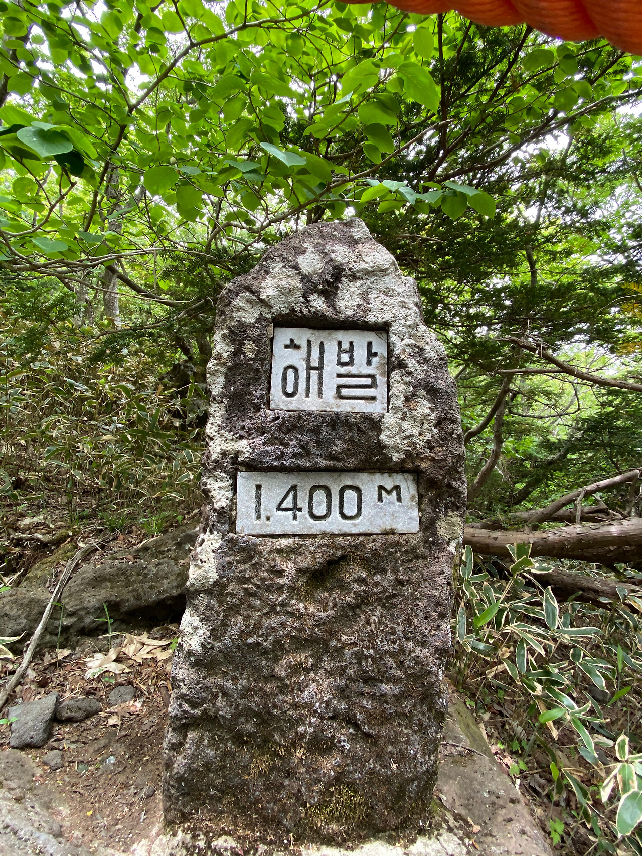 해발 1400m : PM 12:34 - 다리가 풀릴 것 같아 처음으로 잠깐 휴식 후 다시 출발. 여전히 많이 남은 진달래대피소에 그냥 포기할까 고민함.