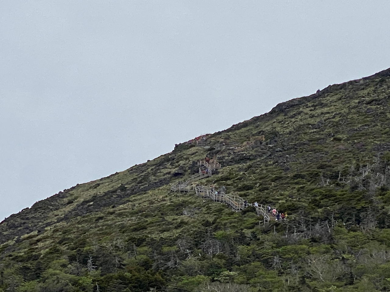 해발 1700m : PM 13:30 - 백록담 바로 전, 마의 계단 지옥에서 한 계단 오르고 쉬고, 한 계단 오르고 쉬고 반복.