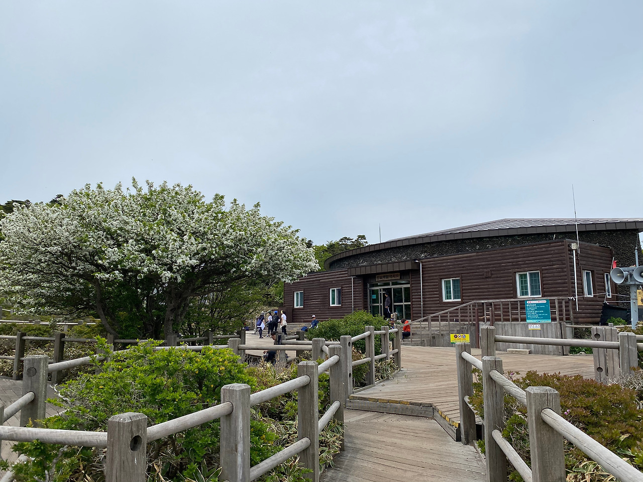 "안내 말씀드립니다. 한라산 정상 개방 시간은 2시 반입니다. 그전에는 하산하셔야 합니다. 그래야 해지기 전에 하산하실 수 있습니다. 2시 반 이후 하산하시지 않으실 경우 상당 금액의 벌금이 부여될 수 있습니다."