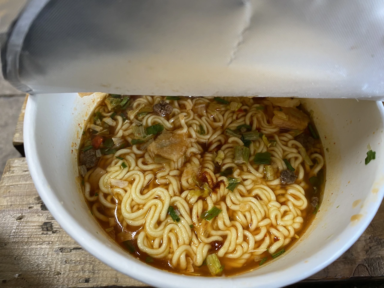 남은 시간은 30분. 평소 같으면 충분히 먹고도 남을 시간이지만 문제는 지치고 힘 빠진 몸뚱어리였다. 나무늘보처럼 모든 행동이 급격하게 느려졌기 때문이다. 느릿느릿 가방에 있는 식량들을 하나하나 꺼냈다. 김밥 포장을 뜯고, 계란 껍데기를 까고, 라면 물을 부어 놓았다. 식사 준비 끝!!! 드디어 젓가락을 집어 들었다.