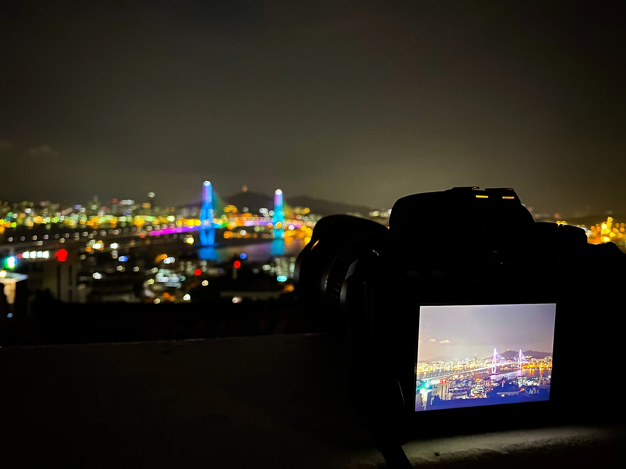 감천팀과 영도팀, 각 팀별 출사를 마치고 숙소에 모였다. 우리의 숙소는 그냥 단순히 잠만 자는 숙소가 아니었다. 숙소인 동시에 야경 출사지였던 것. 아직 해가 한창이라 2층 바에서 시원한 음료(알코올이다^^;;)를 마시며(애미애비 못 알아본다는 낮술 했다는 말이다.^^;;) 서로의 출사 여행 썰을 풀었다. 그러는 사이 어느덧 땅거미가 내려앉았다. 루프탑을 퓨전 레스토랑으로 만들어줄 갖가지 저녁거리 음식들을 배달시키고 음식이 오는 사이 우리는 야경을 찍었다.
