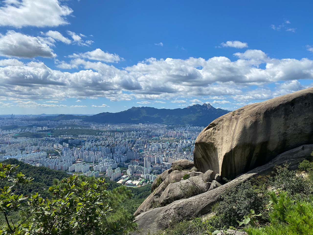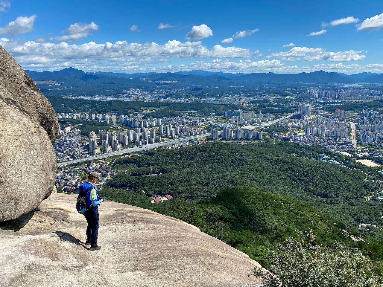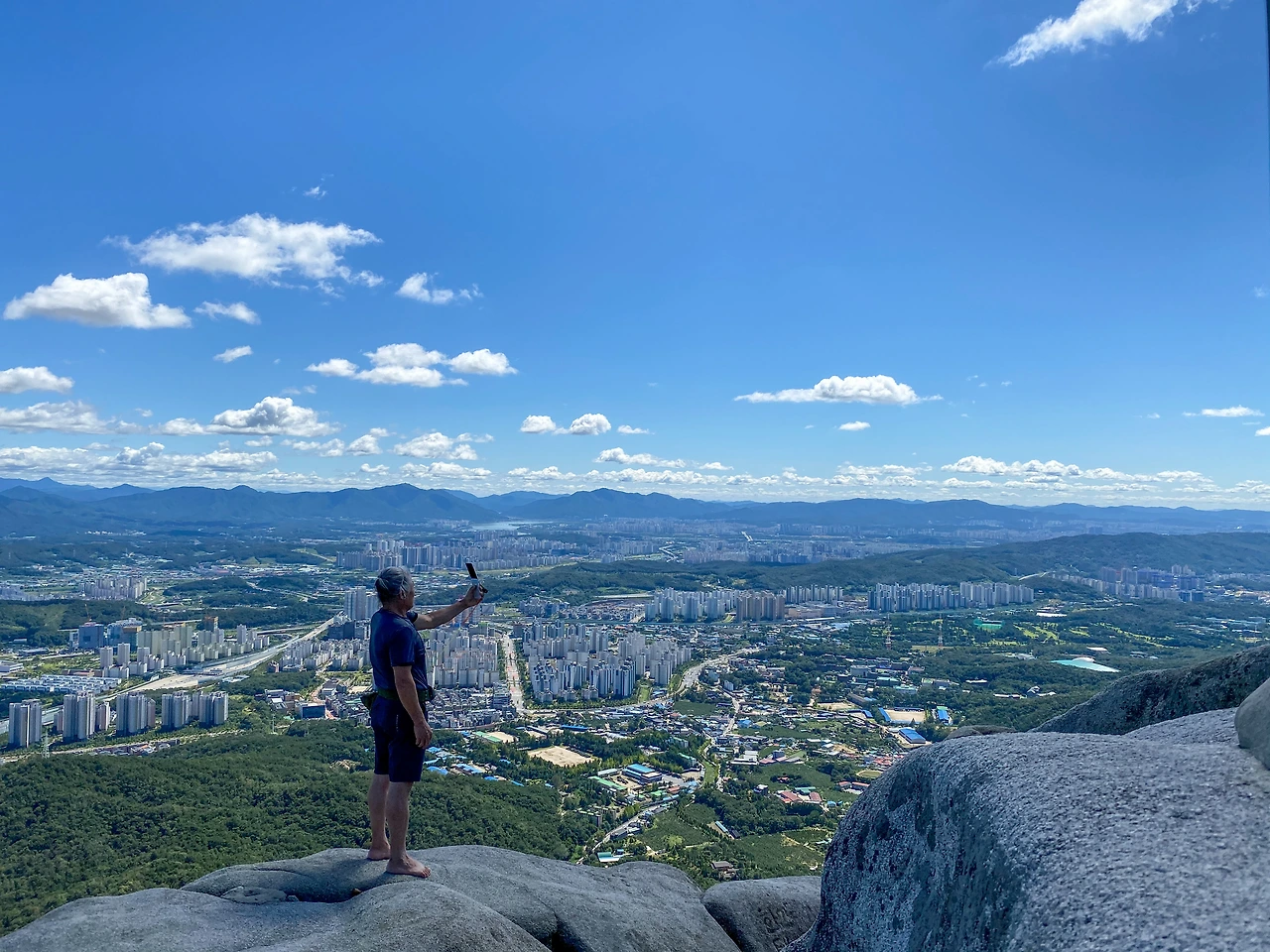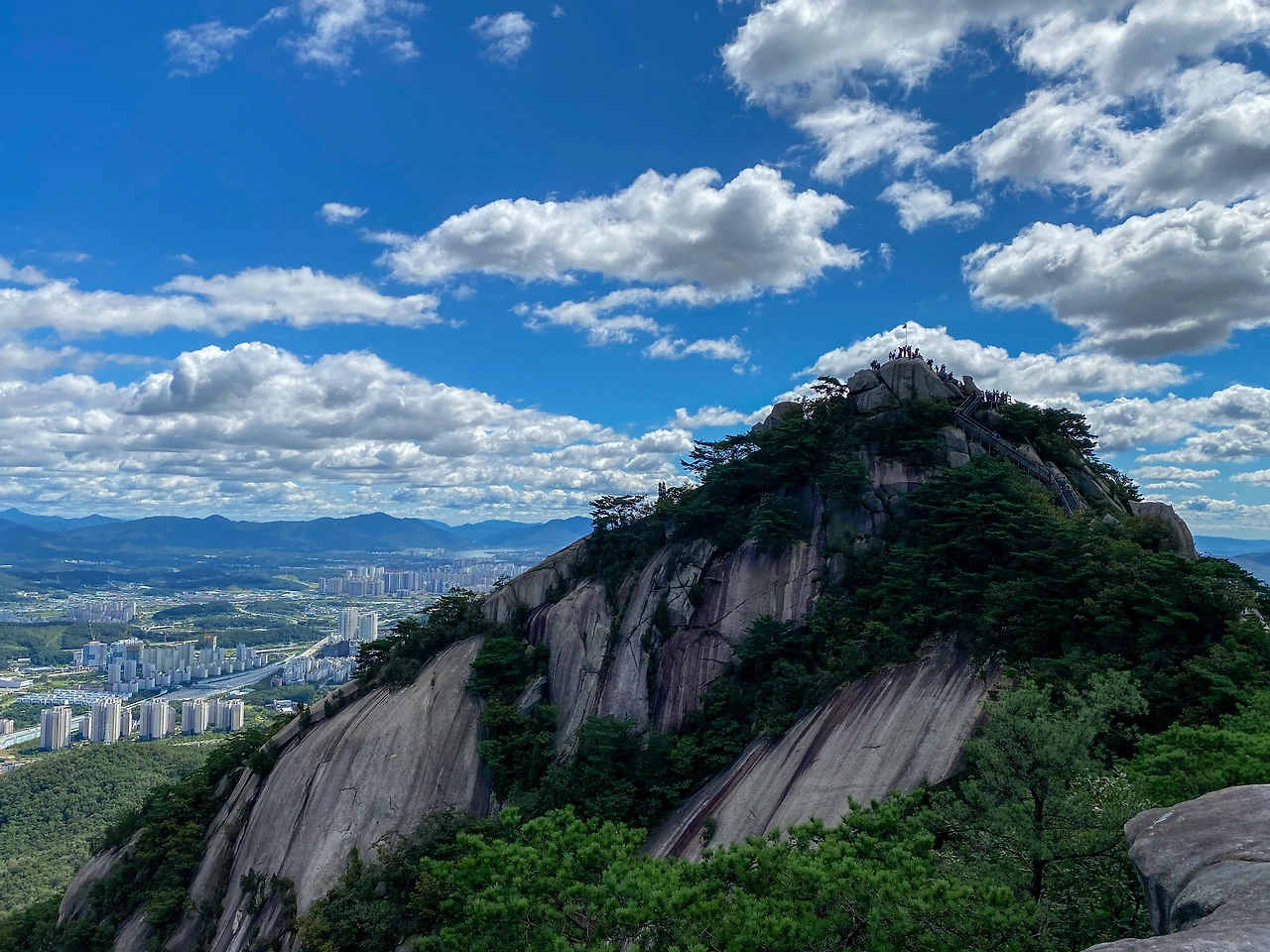 서울 노원구와 경기도 남양주를 끼고 있는 불암산은 교통이 좋고 산 높이도 만만해 많은 사람들이 찾는 서울의 산중 하나다. 등산로도 무난한 편. 중간중간 계곡도 있어 쉬엄쉬엄 오르기에 좋다. 등산다운 등산은 깔딱고개부터다. 화강암을 기반으로 한 돌산다운 가파르고 아찔한 코스들이 본격적으로 등장한다. 다행스럽게도 길이는 비교적 짧은 편. 반짝 힘들고 금세 정상이다. 정상석은 인증숏을 찍으려는 사람들로 북적인다. 관악산 못지않게 2030 젊은 층이 많은 산인만큼 대기줄은 필수다. 하지만 진짜 인증숏 포인트는 따로 있다. 바로 정상석 위 국기봉. 국기봉을 잡으려면 로프 잡고 암벽 타기를 해야 하는데 보기에는 위험하고 어려워 보이지만 막상 해보면 누구나 충분히 오를 만 수준이다. 조금만 용기를 내어보자! 국기봉이 또 다른 뷰를 보여 줄지어니. 물론 그래도 도저히 자신이 없다면 피하는 게 정답이다. 모름지기 산에서는 무리하지도 말고, 겸손도 해야 하는 법이다.