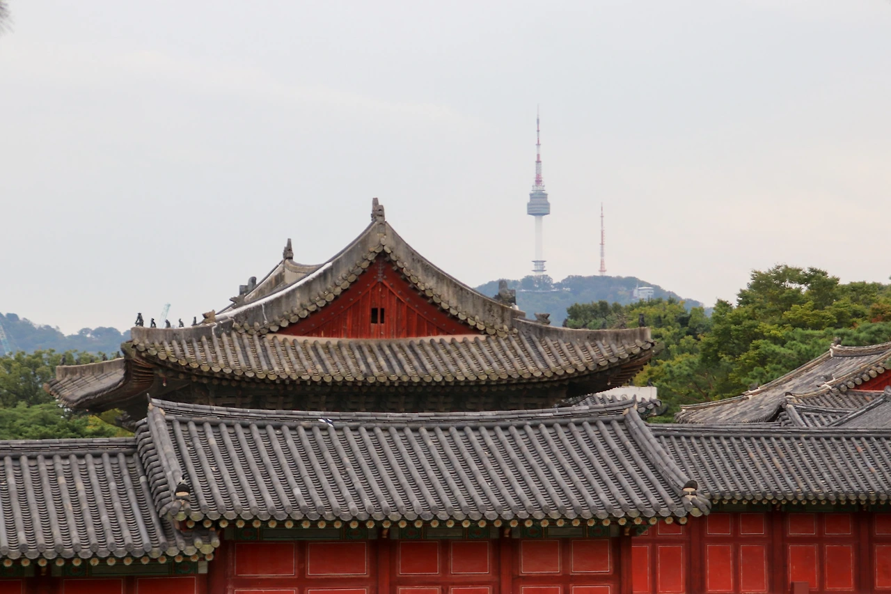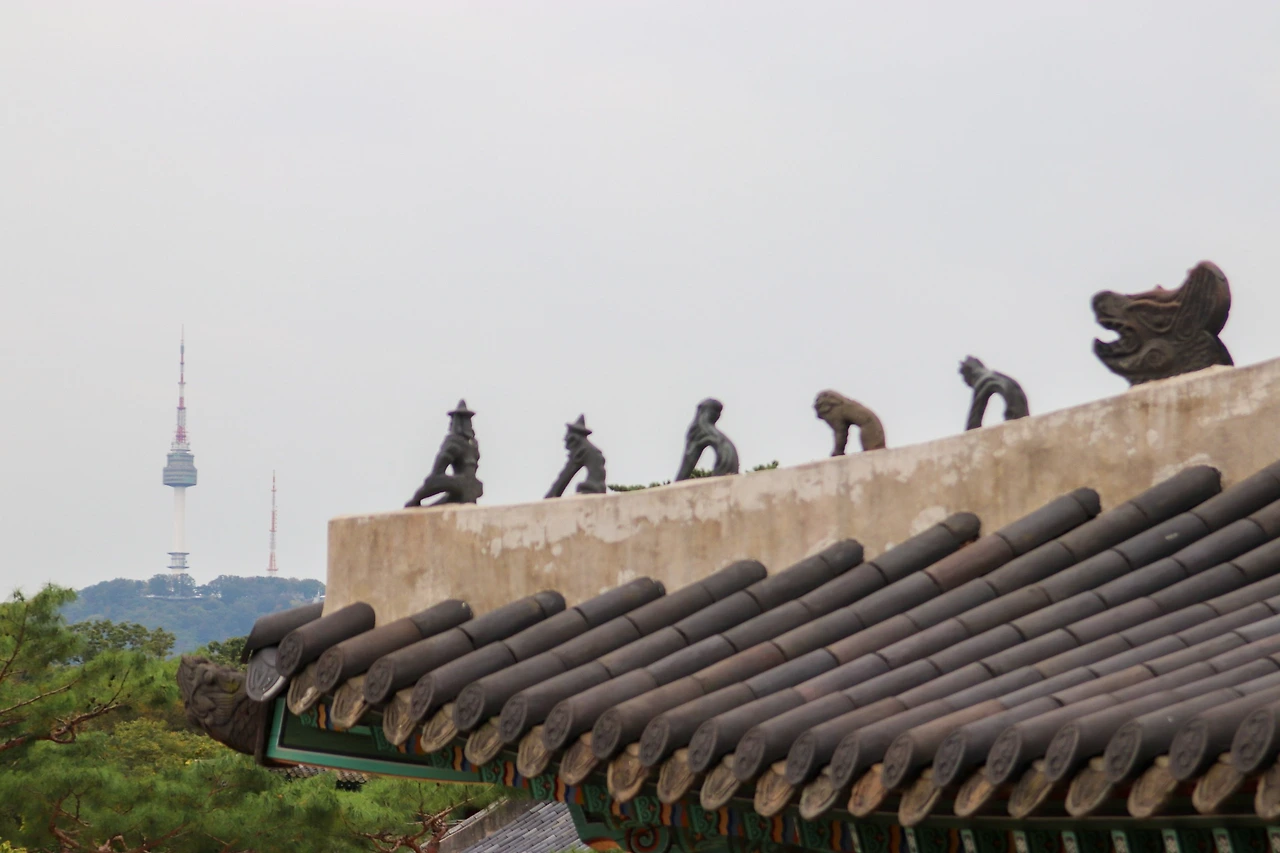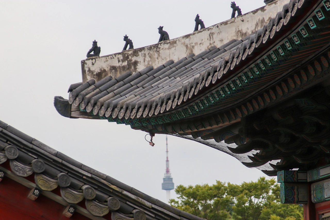 한복을 입고 오기로 한 멤버들 연락을 받고 먼저 궁으로 들어왔다. 경복궁은 몇 번 가본 적이 있었지만 창경궁은(서울에서 30년 넘게 살았는데도) 태어나 처음이었다. 경복궁에 비해 소박한 느낌이었다. 군더더기가 없다고나 할까? 근데 그래서 그런지 카메라에 담고 싶다 할만한 풍경이 눈에 딱 들어오지 않았다. 평소 수평 맞추고 찍는 기본 중에 기본인 정면 구도를 즐겨 찍기는 하지만(그나마 그게 가장 쉬워서) 이번만큼은 피하고 싶었다. 꼴에 출사 한 번 다녀왔다고 평소와는 다른 사진을 찍어보고 싶었기 때문이다. 모름지기 좋은 사진이란 세심한 관찰력에서 나온다 했으니 기와지붕 하나하나까지 매의 눈으로 살폈다. 그러자 하나 눈에 잡히는 게 있었다. 바로 남산서울타워! 식상하지만 과거와 현대의 조화! 난 창경궁 속 숨은 남산 찾기를 시작했다.