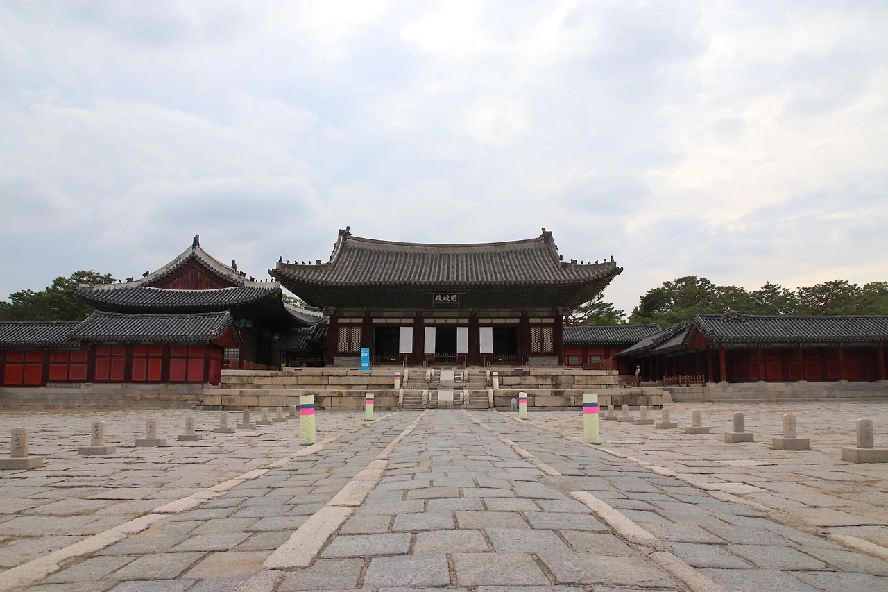 명정전 : 국왕 즉위식, 신하들 하례, 과거시험, 연회 등 공식적인 행사를 치렀던 곳으로 현재 남아있는 조선시대 궁궐의 전각 중에서 가장 오래된 목조건축물이다. 창경궁이 창건되던 때인 1483년(성종 14)에 건립되어 임진왜란 때 불탄 것을 1616년(광해군 8년)에 옛 모습으로 복원하였고 이때 지어진 건물이 지금까지 온전하게 보존되고 있다. (국보 제226호)