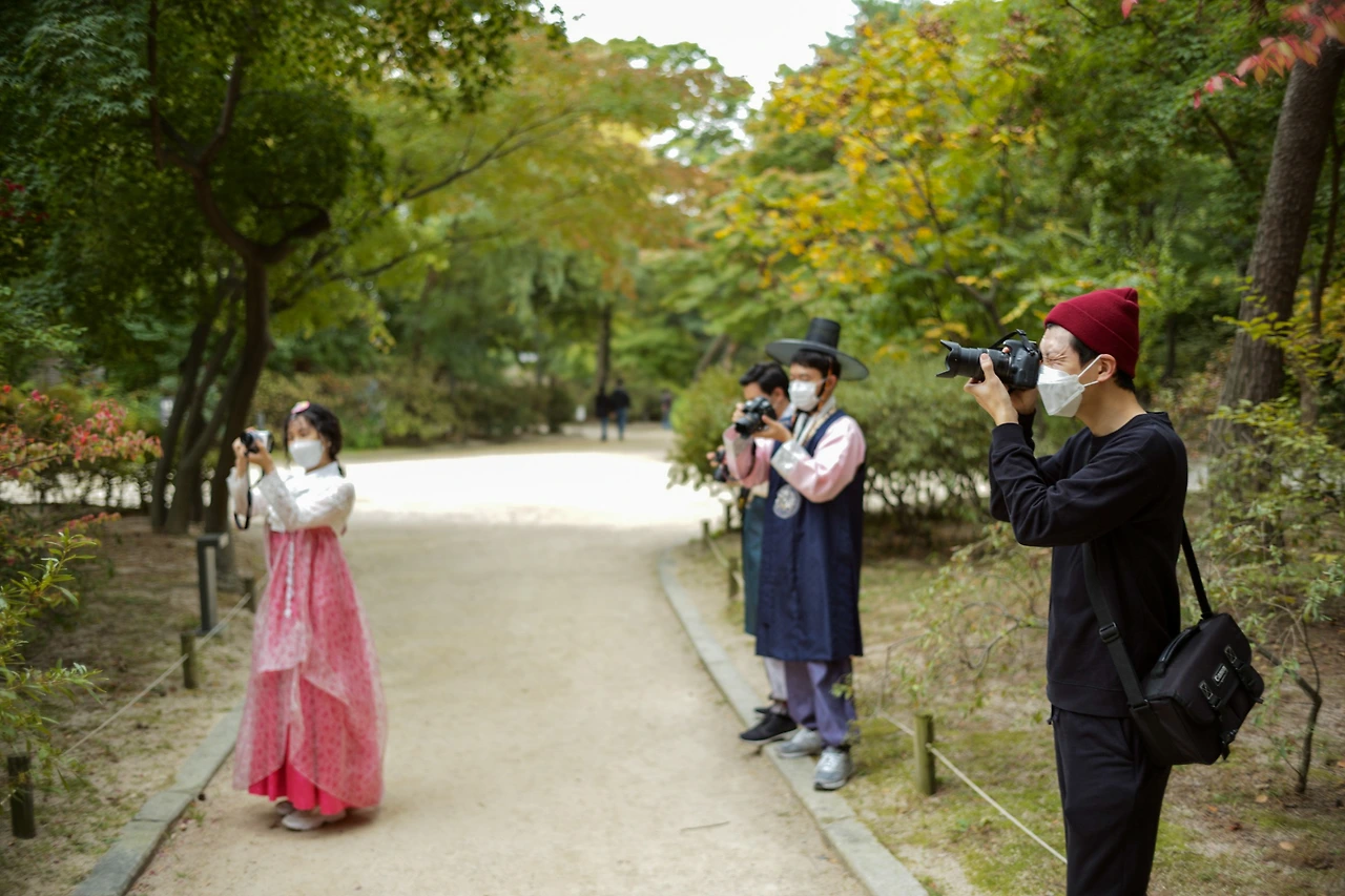 숨은 남산 찾기가 끝나갈 무렵 한복 입은 두 도련님과 아가씨, 그리고 (한복 안 입으신) 사진기사 한분이 도착했다. 한복 모델들도 섭외되었겠다 먼저 인물사진부터 찍었다. 해가 없는 게 역시나 아쉬웠다. 얼굴에 비치는 빛을 이용하면 보다 감성적이고 느낌 있는 사진을 찍을 수 있을 텐데... 이가 없으면 잇몸으로. 일단은 아쉬운 대로 촬영을 이어나갔다.