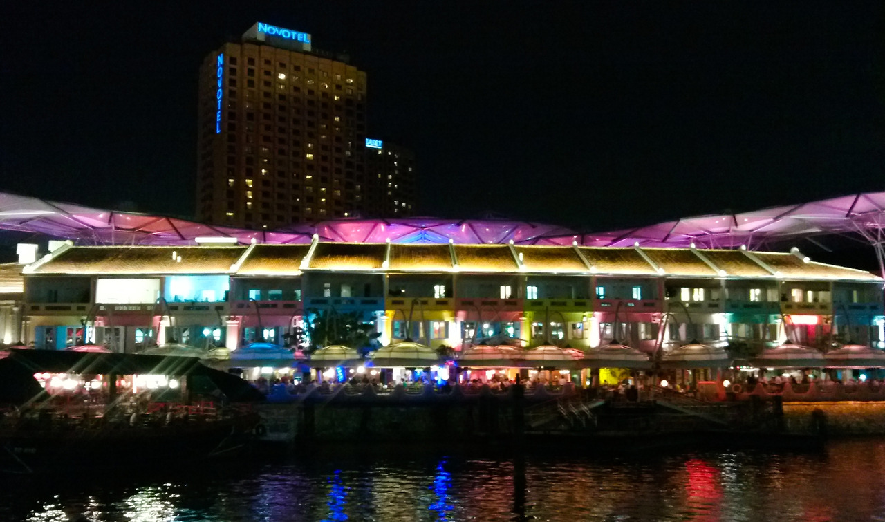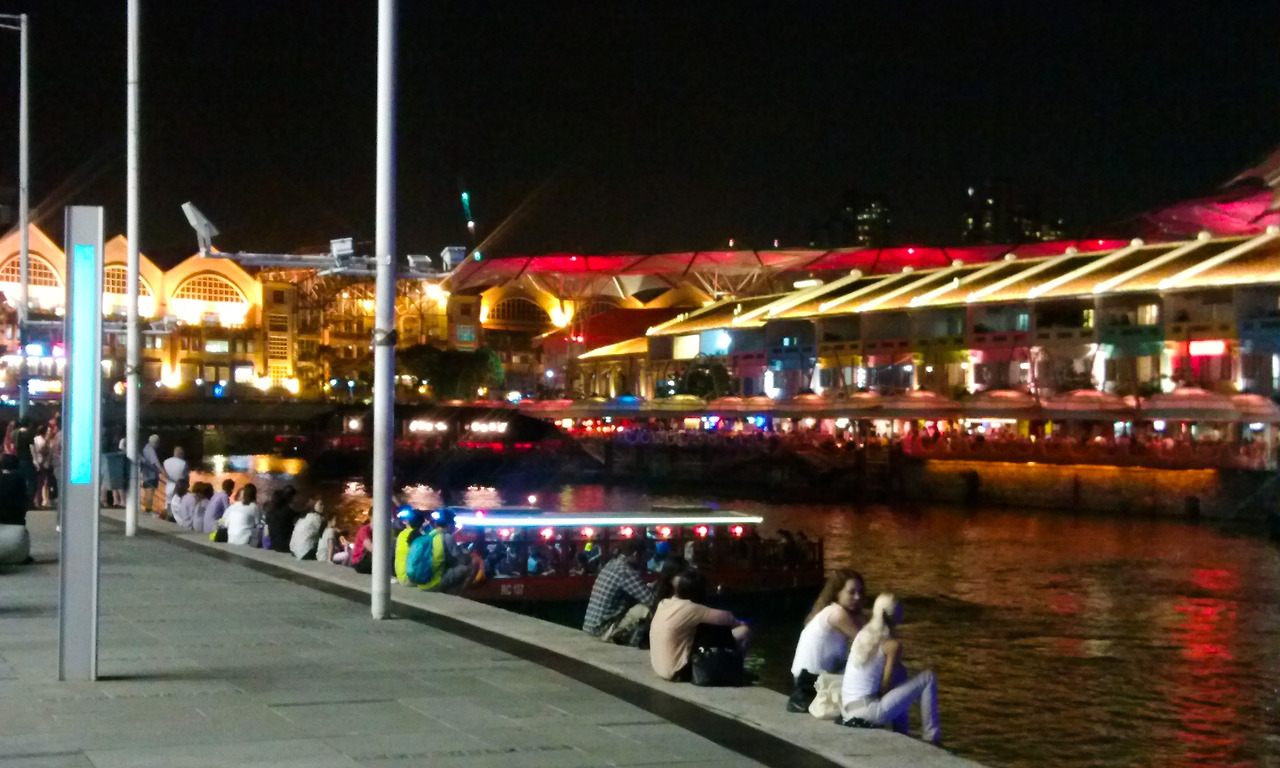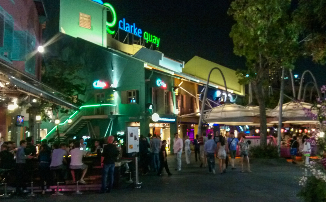 알람 소리도 못 듣고 자는 바람에 저녁 일정이 늦어졌지만 덕분에 몸은 그만큼 더 개운했다. 밤을 불태울 준비 완료! 여행 첫날의 밤을 불태울 곳은 싱가포르 대표 나이트라이프 중심지 클라키 퀘이(Clarke Quay). 클라키 퀘이 MRT 역을 나와 싱가포르 강 쪽으로 걸었다. 강변이 가까워질수록 음악소리는 커졌고, 우리의 텐션도 함께 올라갔다. 그리고 곧 싱가포르 강이 모습을 드러냈다. 역시 강가 야경은 실패가 없다. 우리나라 한강과 비교하면 동네에 있는 작은 천 정도 되는 강이지만 주변 조명들이 강물에 비쳐 클락키 일대를 더 환하게 비추었다. 네모반듯한 아파트와 고층 빌딩들이 있는 한강의 야경이 마음 차분해지는 세련된 야경이라면, 클락키의 야경은 두서없이 반짝반짝한 게 야시장 같은 활발한 야경이었다. 텐션이 또 한 번 업됐다. 그야말로 청춘들의 성지. 세계 각국 여행자들이 이곳에 다 모인 듯했다. 메인 스트리트는 라이브 카페와 펍, 바가 즐비했다. 쿵쾅! 쿵쾅! 리듬에 맞춰 내 심장도 뛰었다. 술은 기본이고, 춤을 추든 노래를 하든 뭐라도 해야 될 것만 같았다. 분위기 파악은 대충 끝났으니 이제 어디에 정착을 할지 선택할 시간. 가장 시끌벅쩍하고 이왕이면 여성분들이 많은(사실 가장 이게 가장 중요했다.^^*) 곳을 스캔했다. 한 펍의 테라스 롱 테이블에서 한데 섞여 놀고 있는 젊은 남녀 무리가 포착됐다. 20명 남짓 되는 인원이 다 같이 맥주를 마시며 웃고 떠들고 있었는데, 원래부터 아는 사이 일 것 같지는 않고 각자 와서 같이 놀고 있는 듯했다.