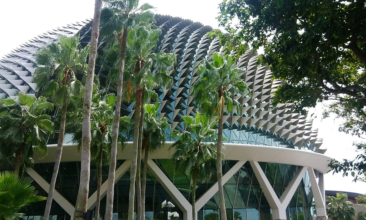 머라이언 파크에서 앤더슨 브릿지(Anderson Bridge)를 건너 열대과일 ‘두리안’을 연상시키는 마리나 베이 또 하나의 포토존 에스플레네이드 공연장(Esplanade Theatres)을 지나, 그리고 DNA를 본뜬 보행자 다리인 헬릭스 브릿지(Helix Bridge)를 건너 마리나 베이 샌즈의 쇼핑센터 더 숍스 앳 마리나 베이 샌즈(The Shoppes at Marina Bay Sands)에 도착했다. 생각보다 먼 여정이었다. 한낯 더위를 간과했다. 지칠 대로 지친 우리는 얼른 쇼핑센터 안으로 돌진. 시간도 어느덧 점심때고 휴식 시간도 가질 겸, 여기서 해외여행 첫 끼를 먹기로 했다.