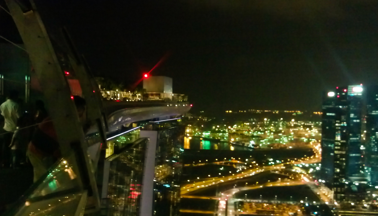 샌즈 스카이파크 전망대는 크루즈선 갑판 위에 있는 느낌이었다. 다른 게 있다면 사방으로 펼쳐진 것이 바다가 아니라는 것. 하늘은 왠지 점프하면 닿을 수 있을 것만 같고, 공중을 떠다니는 배를 탄 것 같았다. 360도로, 아래로 내려다보이는 마리나 베이의 야경은 인생야경이 되기에 충분하고도 남았다.
