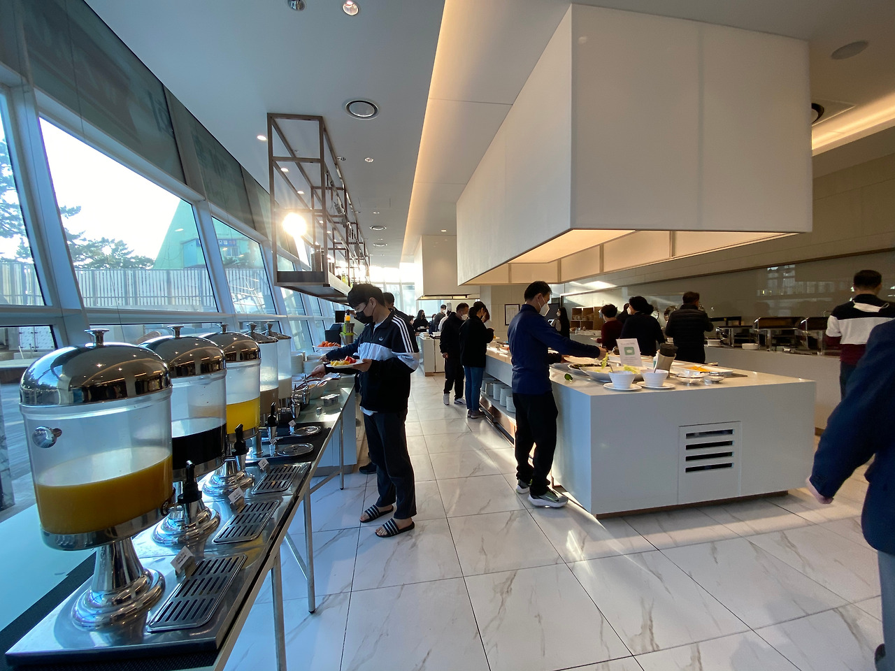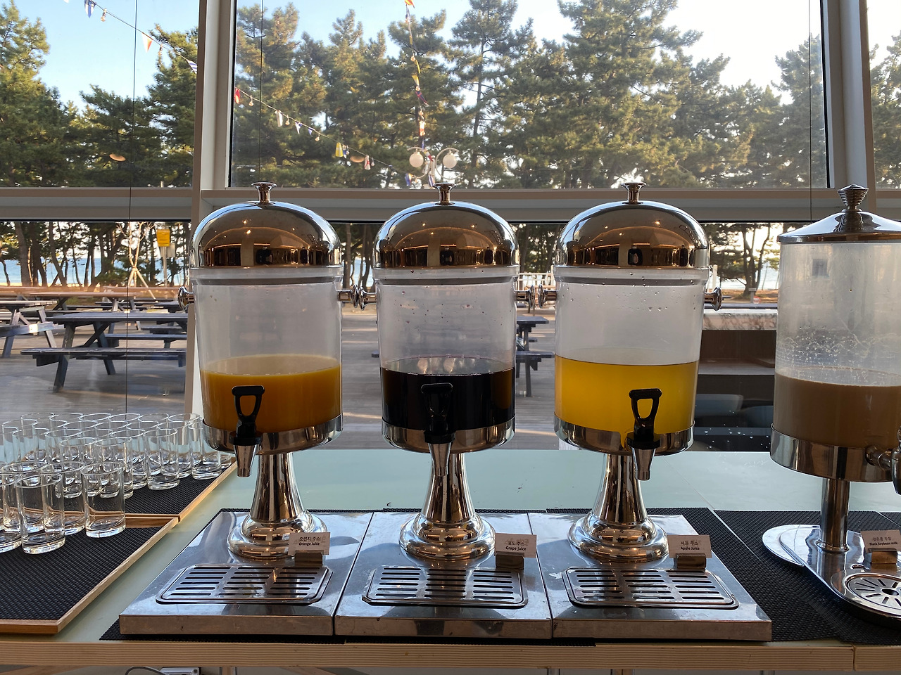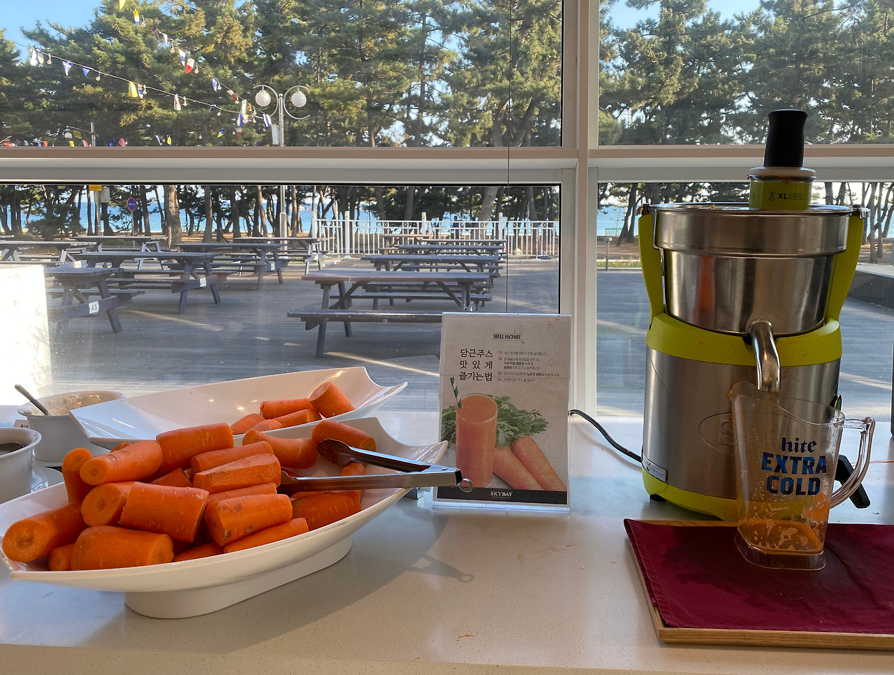 후식 음료 코너에서 가장 인기 있는 메뉴는 당근주스였다. 찾는 사람들이 많기도 했지만 직접 당근을 넣어 만들어 마셔야 했기에 대기가 필수였다. 그렇게까지 기다려 먹고 싶지는 않아 우린 요거트로 장 건강만 챙기고서는 다시 못다 잔 잠을 마저 자러 방으로 올라왔다. 그리고 시간 순삭이었던 우리의 1박 호캉스는 이걸로 끝이 났다.