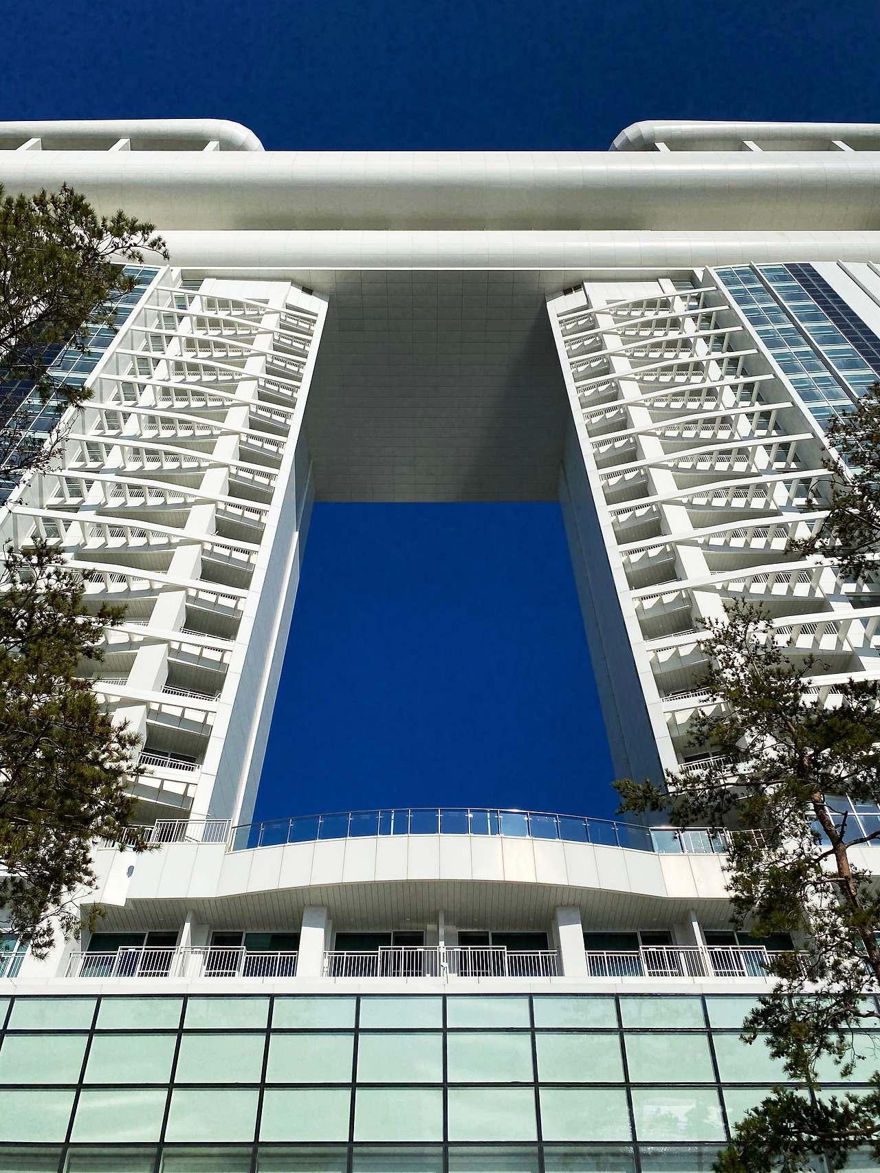 멀리서 보면 고급 크루즈를 떠오르게 만드는 스카이베이호텔 경포는 앞으로는 경포 해수욕장, 뒤로는 경포호를 끼고 있는 경포대의 랜드마크와 같은 호텔이다. 경포대 바다가 보이는 오션뷰 객실은 낮에는 활기차고 시원한 바다를, 밤에는 고요함 속에 철썩대는 파도소리와 달빛을 감상하며 휴식을 즐길 수 있다. 특히 아침에 눈을 떴을 때 바로 앞에 맞닿아 있는 것 같은 일출이 환상적. 경포호가 보이는 레이크뷰 객실도 그만의 매력이 있다. 낮에는 청초함과 여유가 느껴지고, 밤에는 가로등 불빛이 비친 은은한 경포호를 만날 수 있다. 하지만 스카베이호텔 경포만의 가장 큰 장점은 이름처럼 하늘과 맞닿을 것만 같은 오션뷰 인피니티풀! 청명한 하늘과 푸른 바다가 한눈에 들어와 최고의 인생샷과 추억을 남길 수 있다.