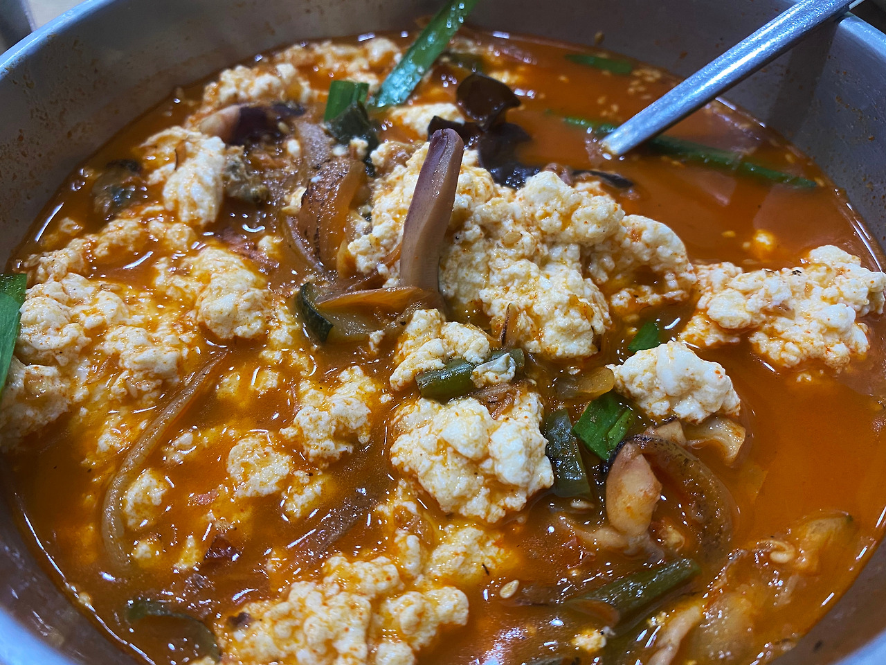 짬순은 우리가 흔히 알고 있는 짬뽕 맛이었다. 거기에 순두부 한 뭉탱이가 먹기 좋게 으깨져서 들어가 있었다. 밥 대신 순두부를 말아먹는 느낌이랄까? 초당순두부인 만큼 두부는 고소했고, 씹지 않고 호로록 마셔도 될 만큼 보들보들했다. 원래 아는 맛으로 맛있기가 가장 힘든 법인데 짬순은 그 어려운 걸 해냈다.