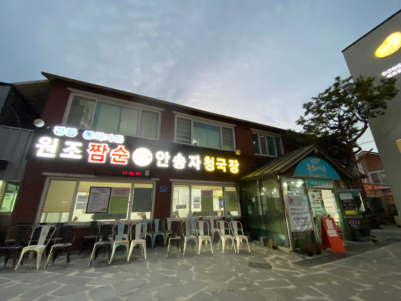 그렇게 여행을 한지 어느덧 2일 차 저녁. 강릉을 떠나야 할 시간이 되었다. 저녁을 먹고 갈 것인지 가는 길에 먹을 것인지를 고민하다가 지인들이 알려준 강릉에서 꼭 먹어야 할 것들이 생각났다. 이왕 생각난 김에 아바타 한번 되어 보기로 했다. 여러 메뉴가 있었지만 그중 우리가 선택한 것은 초당순두부마을의 짬뽕순두부, 일명 '짬순'이다. 저녁이 되어 쌀쌀해지니 따듯하고 얼큰한 국물이 제격이겠다 싶었다. 우린 여행전문가 지인이 소개해준 짬뽕순두부 집으로 향했다.