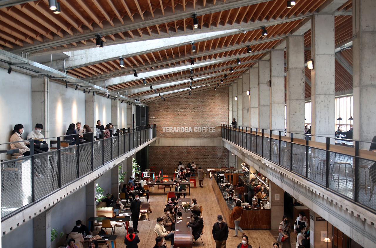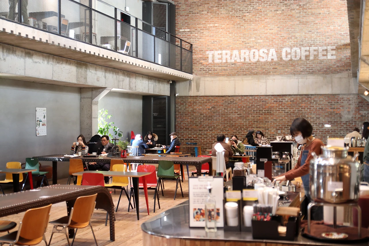 스페셜티 문화 창조를 지향하는 핸드드립 커피 전문점. 서울, 경기, 강릉, 부산, 제주까지 전국 5개도에 총 15개의 체인을 운영하고 있다. 빨간 벽돌의 외관은 테라로사의 상징. 최상급 원두로 최고의 바리스타들이 내려주는 핸드드립 커피를 마셔보자! 커피 맛에 눈을 뜨게 될 지어니.