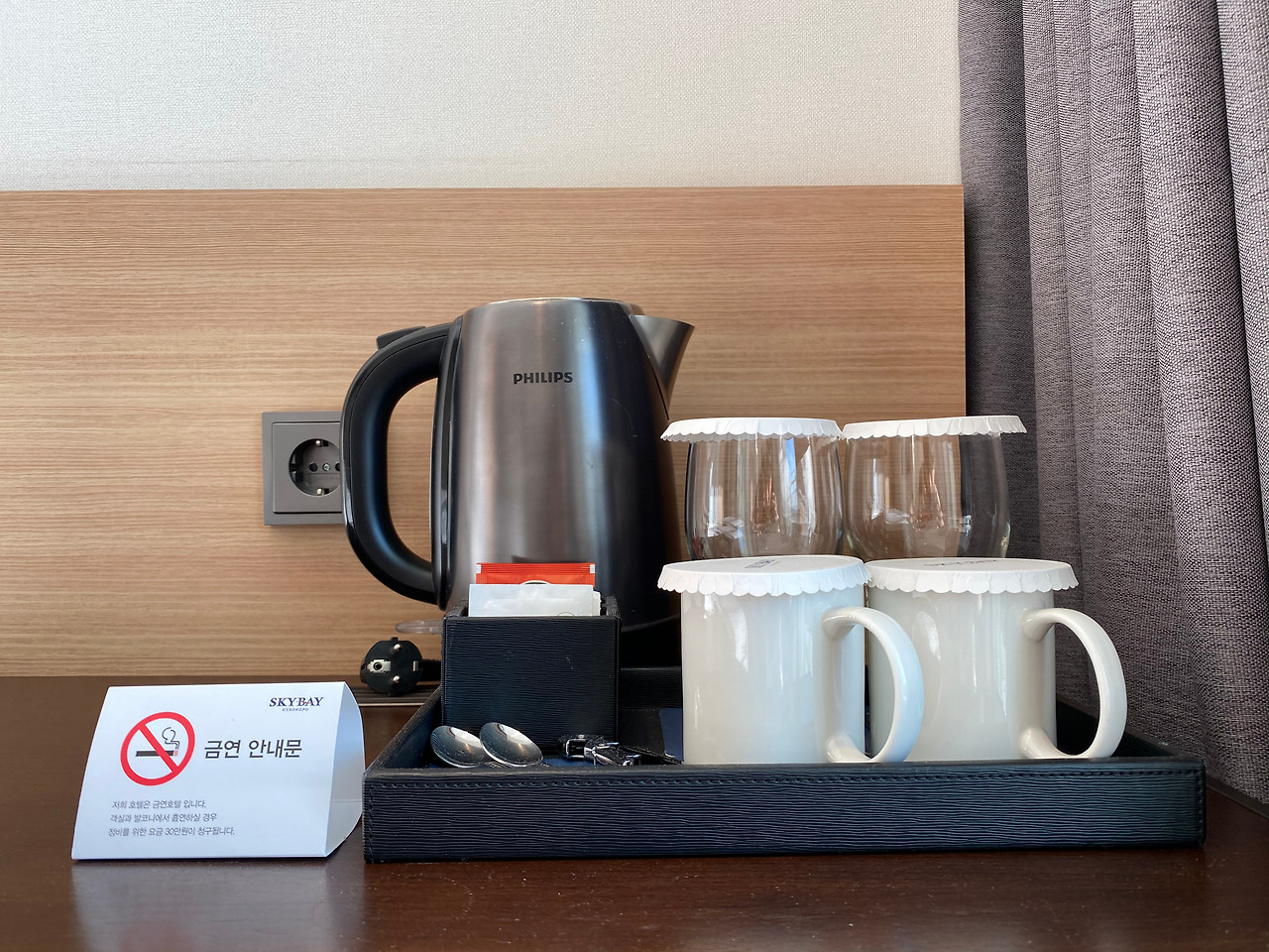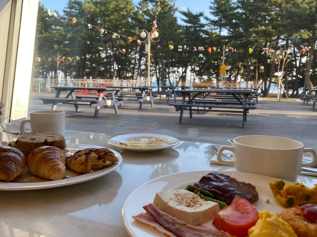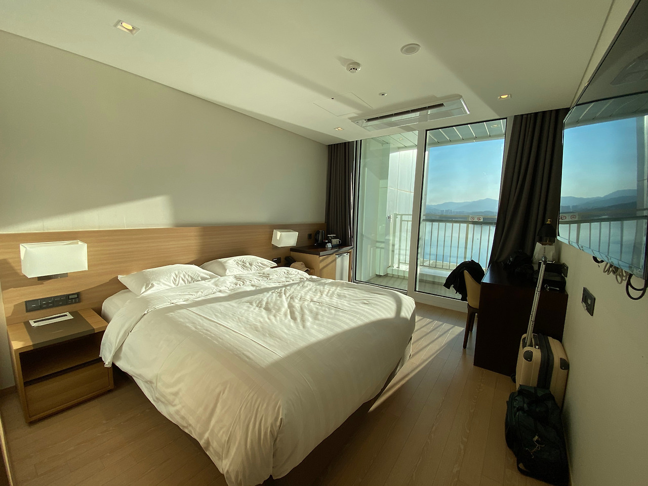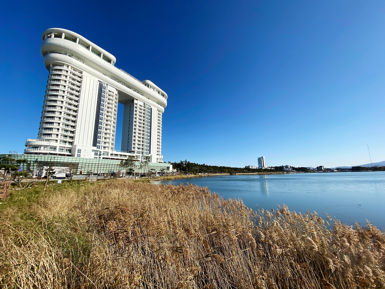 방에 들어오자마자 커튼부터 열어 졌혔다. 어두웠던 방안에 한 줄기 빛이 쏟아지며 경포호의 전경이 한눈에 들어왔다. 눈이 부셨다. 햇빛도 경포호도. 사실 오션뷰가 아니라서 내심 아쉬움이 컸는데 언제 아쉬워했냐는 듯 레이크뷰의 매력에 빠져버렸다. 과연 오늘 밤 달이 뜰까? 경포호에 비친 달이 그렇게 아름답다는데. 다가올 밤 풍경을 생각하니 벌써부터 설렜다.