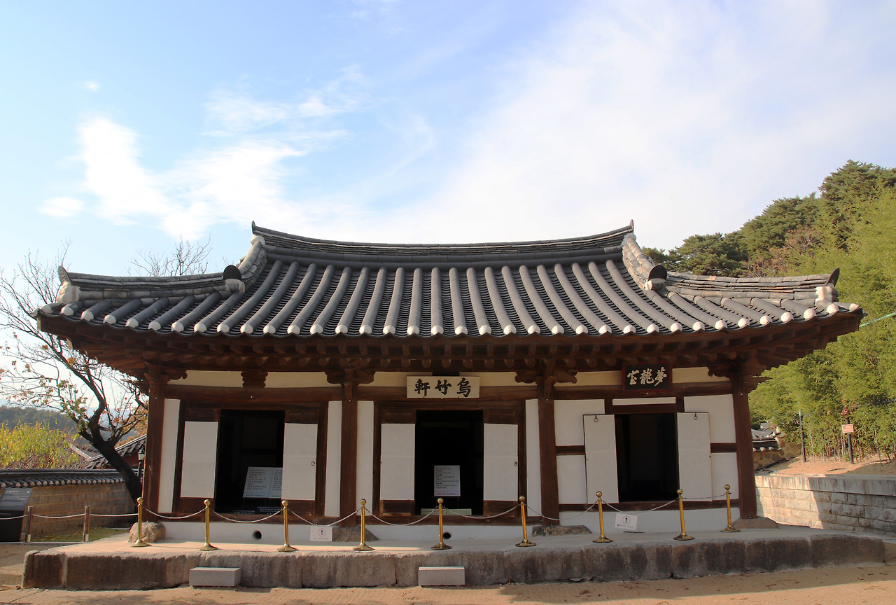신사임당의 친정이자 율곡 이이가 태어난 오죽헌(烏竹軒)은 구오천원권의 배경지다. 실제 오천원권 배경 촬영 당시 사진을 찍었던 위치에 포토존이 마련되어 있었다. 포토존에 서서 카메라 뷰파인더를 들여다봤다.