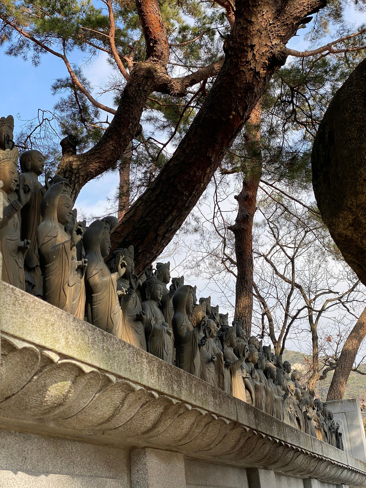 북한산국립공원에 속해 있는 도봉산은 산 전체가 하나의 큰 화강암으로 이루어진 돌산이다. 그런 만큼 암벽과 암릉지대가 많고, 그런 만큼 수려한 경관을 자랑하는 봉우리들도 많다. 자운봉, 만장봉, 선인봉, 신선대, 오봉, 우이암 등이 대표적인 도봉산의 아이돌(石)들이다. 그중 자운봉, 만장봉, 선인봉은 도봉산의 '봉우리 삼형제'로 불린다. 자운봉은 도봉산 최고봉(높이 739.5m)으로 명실상부 도봉산의 정상이지만 등반하기에는 위험하여 산행 금지구역으로 지정되어있다. 대신 바로 옆 신선대 정상(높이 726m)에서 자운봉을 바라볼 수 있다. 자운봉 다음으로 높은 만장봉(높이 718m)은 암벽등반으로 오를 수 있다. 신선대에서 만장봉 정상을 향해 낑낑 거리며 올라가는 사람들 모습을 심심치 않게 볼 수 있다. 만장봉 뒤로 살짝 보이는 선인봉(높이 708m) 역시 대표적인 암벽등반코스. 신선대에서는 오른쪽 상단부만 살짝 보이는데 도봉산 등산로 초입, 천축사에 다다르기 전에 나오는 선인봉 포토존에서 보면 비록 멀리 있지만 우람한 자태를 온전히 눈에 담을 수 있다. 자운봉, 만장봉, 선인봉. 연간 1,000여만 명이 도봉산을 찾는다는 명성의 중심에 봉우리 삼형제가 있다.