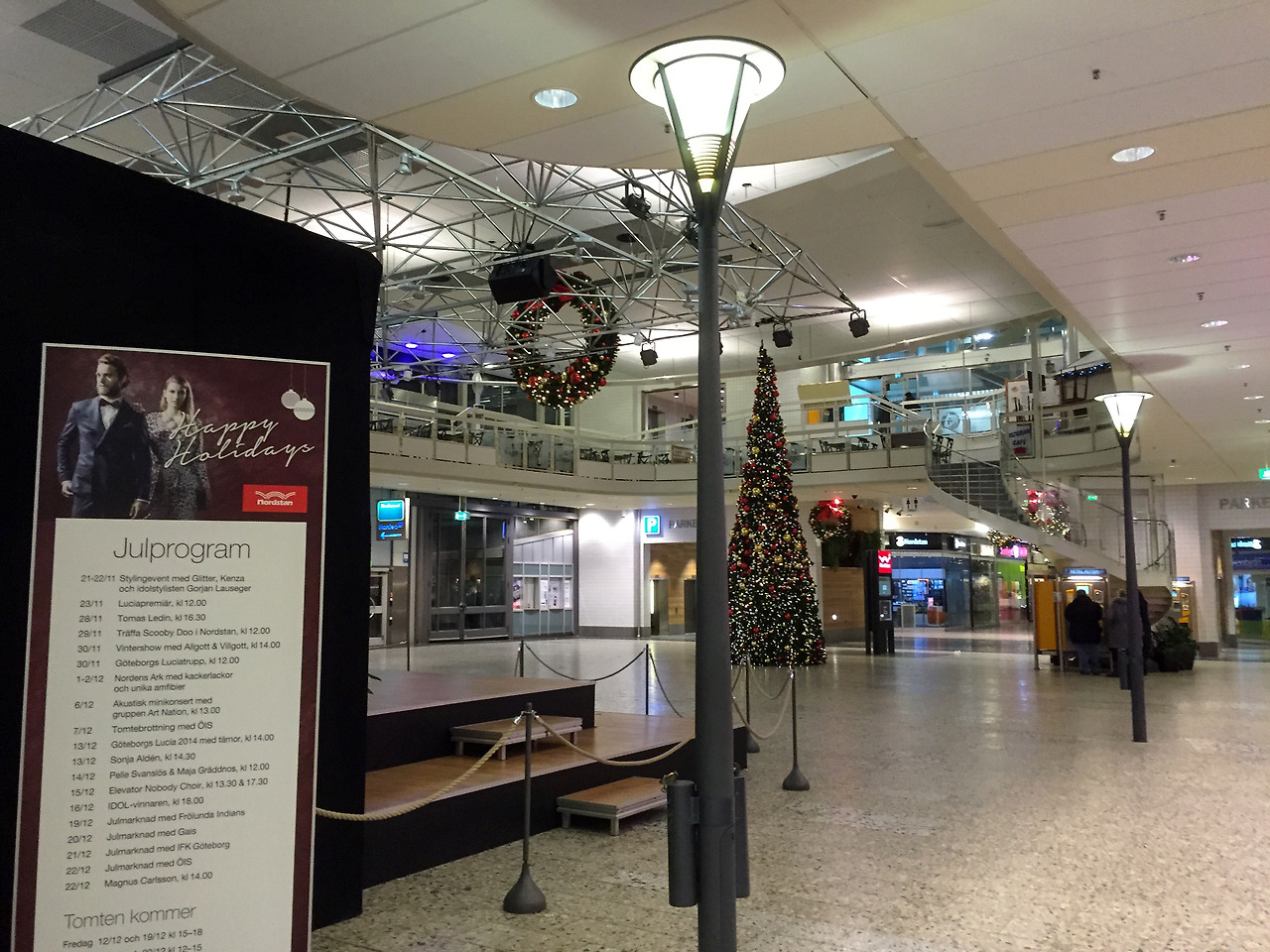 크리스마스 분위기를 가장 잘 느낄 수 있는 곳이 어딜까 생각하다가 예테보리 중앙역 근처 ‘노르드스탄(Nordstan) 쇼핑몰’이 떠올랐다. 스웨덴은 물론 스칸디나비아반도에서 가장 규모가 큰 쇼핑몰로 핸드메이드 공예품부터 시작해 명품 브랜드, 빈티지숍, 다양한 종류의 먹거리까지 갖추고 있어 평일에도 항상 사람들로 붐비는 곳이었다. 크리스마스이브인 만큼 커플지옥이라는 말 그대로 온통 팔짱 낀 커플들로 득실거리는 명동 거리 같은 분위기를 기대하며 노르드스탄으로 향했다.