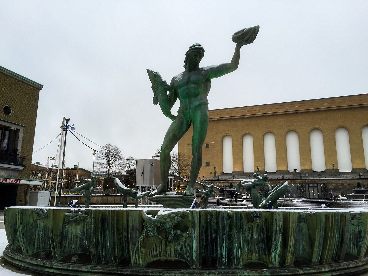 예타광장은 1923년 예테보리에서 개최된 세계 박람회를 위해 만들어진 예테보리를 대표하는 중앙광장이자 랜드마크다. 중앙에 분수대가 있고 주변으로는 예테보리 미술관, 시립 극장, 콘서트홀, 공립 도서관 등이 있어 예테보리 문화, 예술의 중심지라 할 수 있다. 광장 중앙의 분수대에는 매끈하면서도 탄탄한 몸매를 자랑하는 포세이돈상이 있다. 예타광장의 상징이다. 바다의 수호신답게 한 손에는 커다란 물고기를 움켜쥐고, 다른 한 손으로는 조개를 떠받치고 있다. 마치 자신이 이 바다의 주인이라는 듯 그 모습이 위풍당당했다. 하지만 무엇보다 시선을 강탈하는 건 따로 있었으니, 그건 바로 남자의 소중한 ‘그것’.(므흣) 실오라기 하나 안 걸치고 있는 탓에 아주 적나라하게 보였다. 하물며 디테일도 살아있다.(므흣) 그 모습 또한 위풍당당! 하다고 하기 에는 근데 ‘그것’ 참... 신이라고해서 뭐 아주 그리 대단하지는 않았다는...^^;;