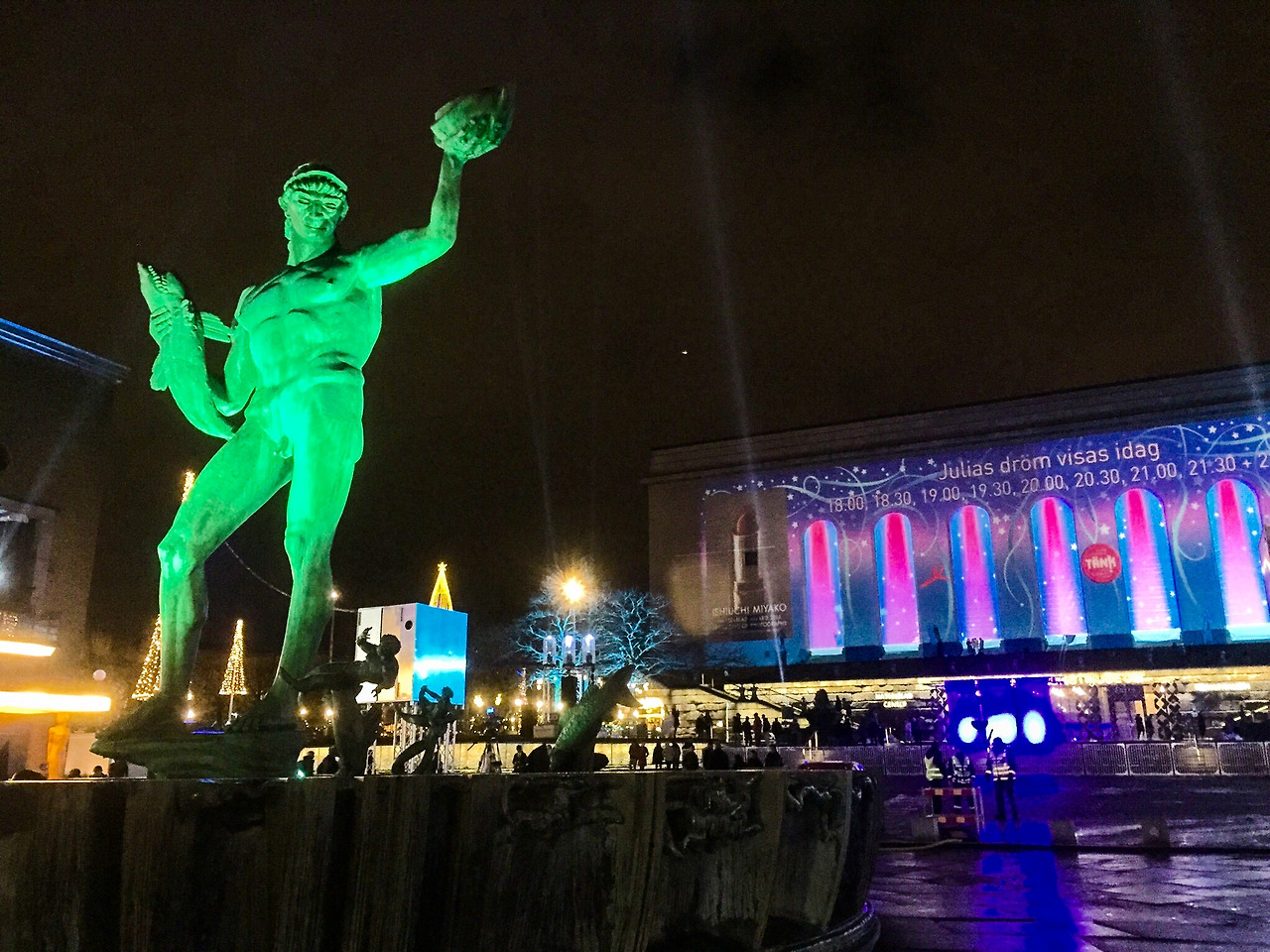 포세이돈상을 중심으로 행사 준비가 한창이었다. 무대와 조명이 설치되고 있었다. 자정까지는 아직 시간이 있어 사람들이 빽빽이 모여 있지는 않았다. 명당 선점을 위해 죽치고 기다릴까 했지만 가만히 있기에는 추운 날씨였다. 몸도 녹이고 시간도 때울 겸 예테보리의 밤거리를 즐기다 와야겠다 싶었다. 밤 10시가 넘어서도 이토록 활기찬 예테보리는 오늘 같은 날이 아니면 볼 수 없으니 말이다.