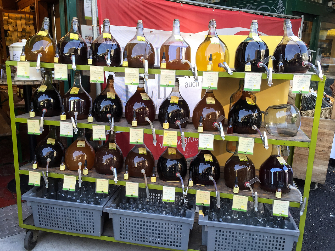 탕!탕!탕! 만장일치로 통과. 그럼 어떤 시장을 갈 것인가? L대리는 거기까지 다 계획이 있었다. 빈에서 가장 인기 있는 시장을 알아놨으니 자기만 따라오란다. 그렇게 자신감 충만한 L대리를 따라 도착한 곳은 나슈마르크트(Naschmarkt) 시장이다. 빈에서 가장 인기 있는 시장으로 빈 서민들의 식탁을 책임지는 로컬 재래시장이었다. 고기, 야채, 생선, 치즈, 소시지 등과 같은 식재료들은 물론 인도나 중동에서 사용하는 향신료와 식초도 있었다. 또한 오스트리아 로컬 음식을 비롯해 케밥, 카레, 초밥, 쌀국수 등 다양한 음식점들이 있어, 장 보다 출출해지면 군것질이나 아예 식사를 할 수도 있었다. 하지만 우리가 찾은 시간은 너무 아침이라 식재료 가게들을 제외하고는 대부분의 음식점들은 닫혀 있어 아쉬웠다.