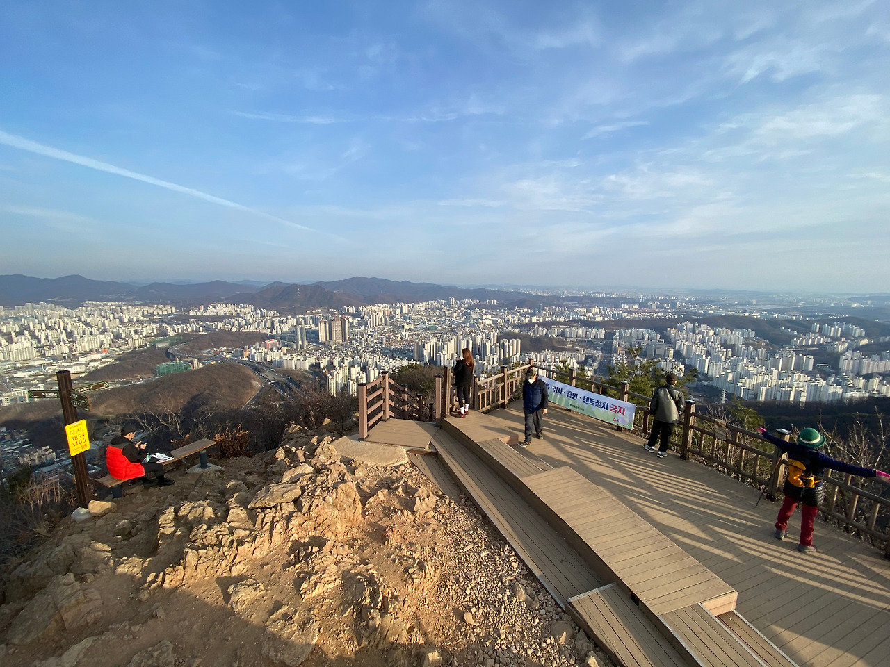 산봉우리가 독수리를 닮아 이름 붙여진 수리산은 아주 높지도 않고, 주변 경관이 아주 빼어난 것도 아니지만, 동네 뒷산은 너무 시시하고 북한산이나 도봉산처럼 (수도권에서) 비교적 큰 산은 부담스러운 등린이들에게 딱이다. 동네 뒷산도 힘든 레알 순수 등린이라면 무성봉까지만 가도 좋다. 여기까지는 산악자전거를 즐기는 사람들이 있을 정도로 길이 순탄하다. 높이가 고작(?) 258m이지만 정상석도 있어 나름 정상에 온 기분도 느낄 수 있다. 동네 뒷산 정도는 가뿐한 등린이라면 다음 봉우리인 슬기봉까지 더 가보자. 탁 트인 군포 시내의 전경을 만날 수 있다. 슬기쉼터에 뾰족하게 솟아있는 (비공식) 슬기봉은 수리산 대표 사진 맛집이다. 이름이 슬기쉼터인 만큼 자리 깔고 쉬어가기에도 좋다. 슬기봉 이후부터는 밧줄바위, 칼바위, 병풍바위 코스가 있어 제법 산타는 맛이 난다. 슬기봉으로도 성이 안 차는 무늬만 등린이, 알고 보니 산쟁이라면 수리산 최고봉인 태을봉을 넘어 마지막 봉우리인 관모봉까지 가자. 주인공은 항상 마지막에 나타나 듯, 절경도 마지막에 나온다.