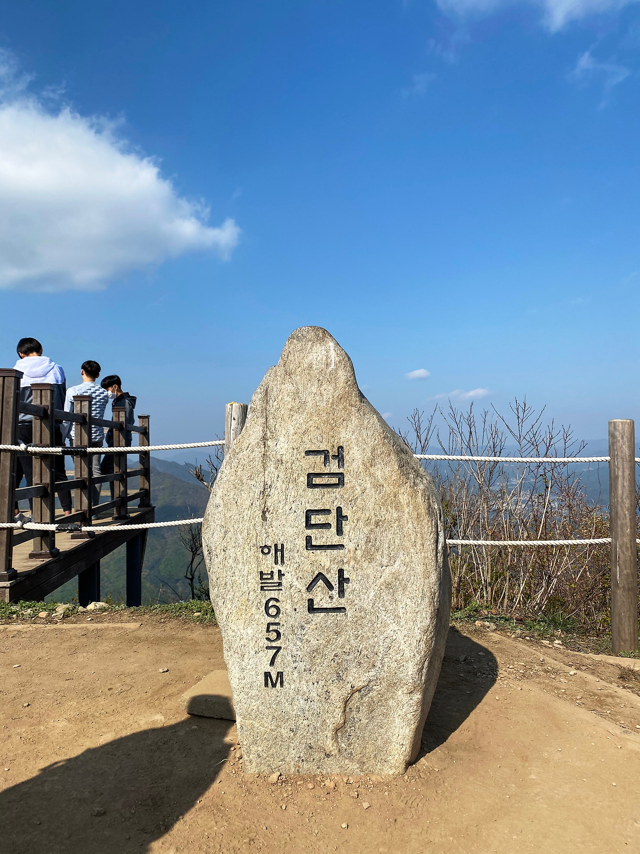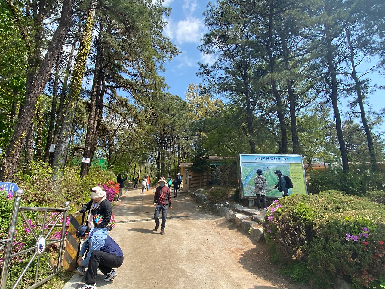 오를 등(登)에 뫼 산(山), 말 그대로 정상을 향해 산을 오르는 게 등산(Climbing)이라면, 트레킹(Trekking)은 산(또는 자연)의 풍경을 즐기며 천천히 걷는 것을 말한다. 사전적 정의로는 높이 5,000m 이상은 등산, 그 이하는 트레킹으로 구분한다고도 한다. 하지만 이건 어디까지나 사전적인 전문가들의 기준이고 우리네들의 현실 기준은 조금이라도 위로 올라가면 다 등산, 평지를 걸으면 트레킹이 아닐까 싶다. 그런 의미에서 최고 높이 657m의 검단산은 다분히 등산이다. 아주 높지는 않지만 적어도 수도권에서는 충분히 으스댈 수 있는 높이다. 그렇다고 부담을 가질 필요는 없다. 등산로는 완전 순둥이니까. 등산이라기보다는 트레킹에 가깝다. 다만 경사가 있는 트레킹이랄까? 산이기에 기본적인 오르막은 어쩔 수 없지만 울퉁불퉁, 뾰족뾰족, 아찔한 바위를 두 다리 후들거리며 오를 일은 없으니 안심하자. 대부분 흙길이 많고 급경사 구간은 계단으로 정비가 잘 되어 있다. 그래서 아이들 또는 부모님과 함께인 가족단위 등산객들이 많다. 댕댕이들도 자주 눈에 띈다. 그만큼 순탄하다는 증거다.