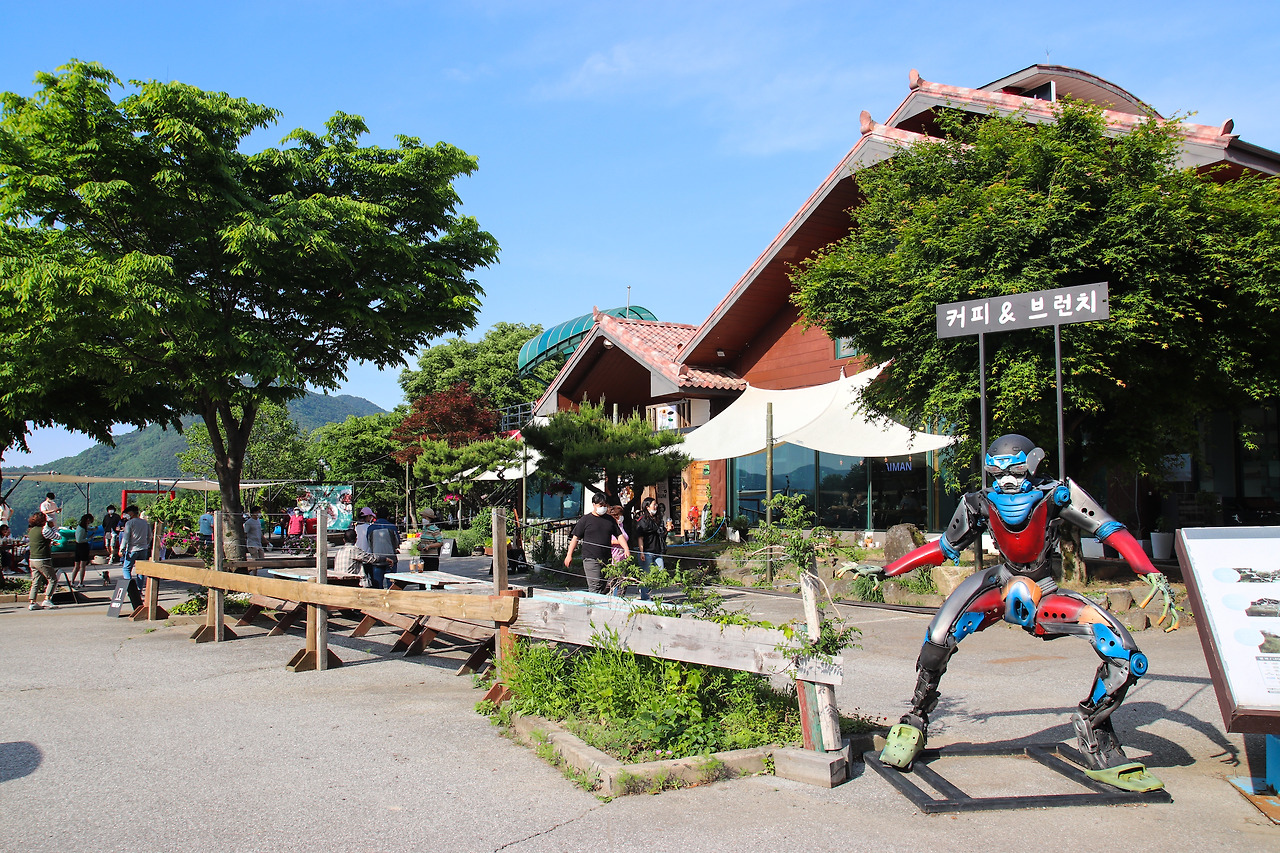 대미산 악어봉 아래에 위치해 있어 충주호와 악어섬이 보이는 전망 좋은 카페다. 2층 루프탑에서는 월악산 영봉도 볼 수 있다. 곳곳에 포토존이 널려 있어 사진만으로도 하루 반나절 이상은 충분히 보낼 수 있을 것만 같다. 또한 보드게임도 대여할 수 있어 말 그대로 게을러지기 좋은 공간이다. 하이라이트는 뭐니 뭐니 해도 야외 테라스에서 끓여 먹는 캠핑라면! 카페지만 다들 라면 먹으러 오는 이곳은 카페의 탈을 쓴 라면 맛집이라 할 수 있겠다.