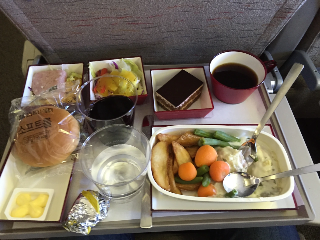 기내식을 향한 의심은 이륙한 지 3시간 만에 풀렸다. 메뉴는 단출하게 2가지. 한식과 양식. 자타 공인 육식동물이자 양식 마니아인 난 당연히 포크 앤 나이프를 선택했다. 주문이 끝나자 앞에서부터 차례차례 기내식이 배달됐다. 그리고 마침내 내게도 기내식이 도착했다. 좌석 테이블 사이즈에 딱 맞는 네모난 도시락 같았다. 작지만 그 안에 메인, 사이드, 디저트, 음료까지 있을 건 다 있었다. 무엇이 잘못되었는지(아마도 내가 메뉴를 잘 못 본 듯하다.) 고기는 없고 온통 야채 파티였지만 다 먹고 나니 제법 배가 불렀다. 균형 잡힌 한 끼를 정찬으로 먹은 기분이었다. 인스턴트의 향이 1도 안 느껴졌다고 하면 거짓말이지만 지금까지 살면서 먹어본 인스턴트 중(군대에서 먹은 전투식량 포함) 가장 품격 있는 인스턴트였다고는 감히 말할 수 있을 것 같았다. 다음 식사 시간이 기다려졌다.
