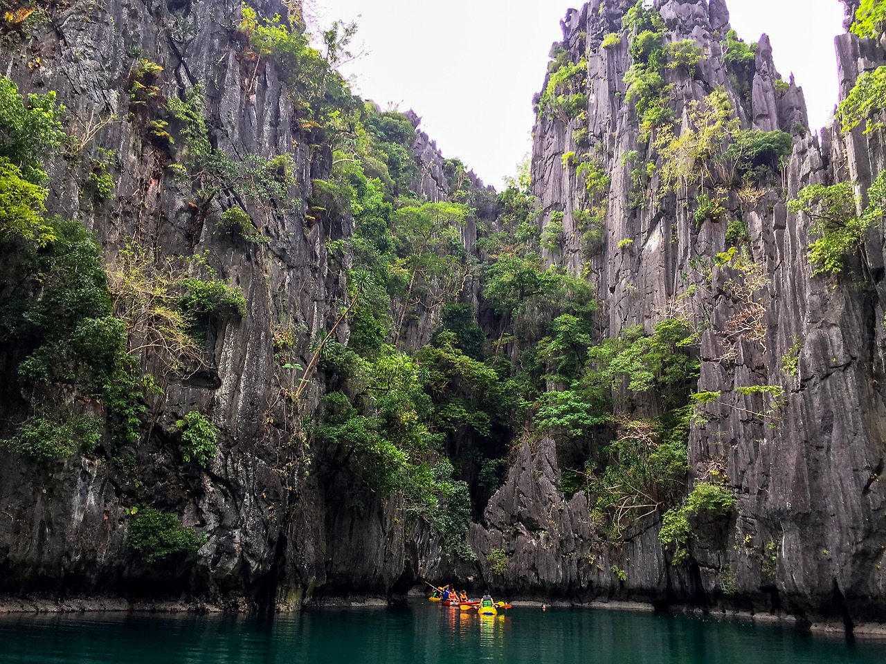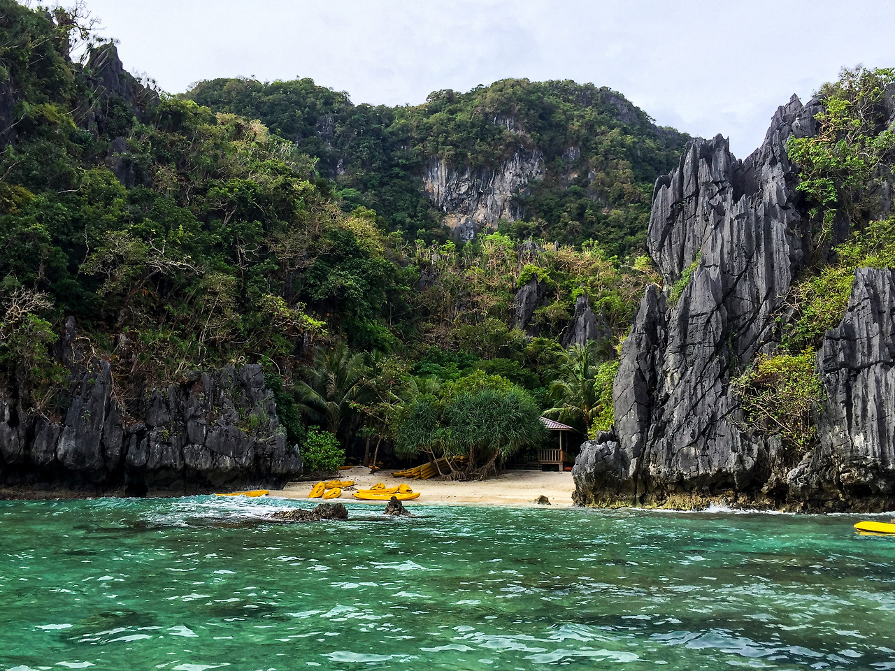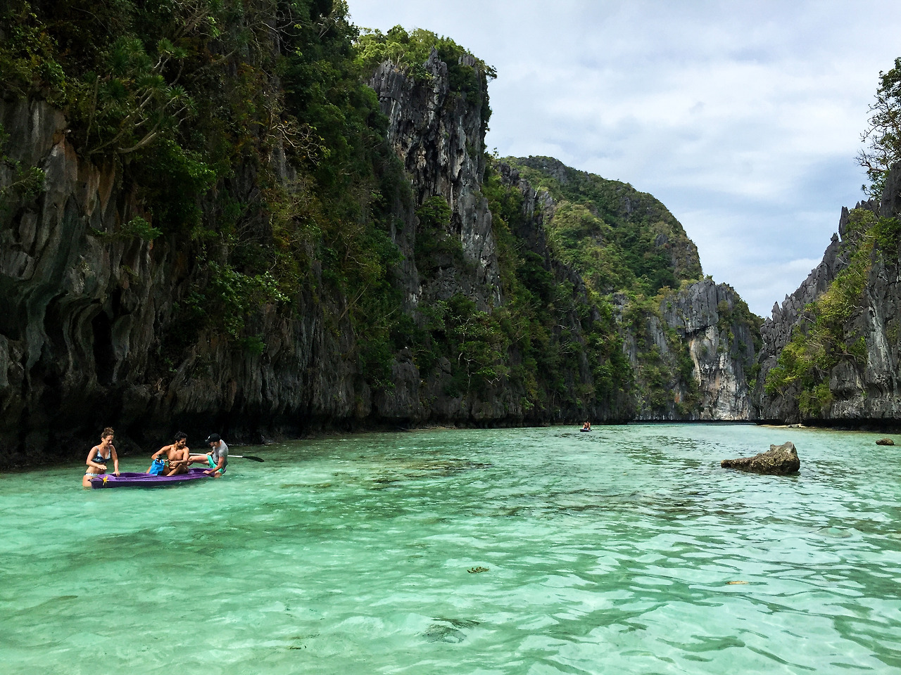 엘 니도 호핑투어의 메인 스폿은 미니락 아일랜드 북쪽에 있는 스몰 라군(Small Lagoon)과 빅 라군(Big Lagoon)이다. 그중 스몰 라군은 수심이 깊지 않아 수상 액티비티를 즐기기에 제격이다. 대표적인 수상 액티비티는 카약. 이름 그대로 라군 사이즈가 ‘스몰(Small)’ 인지라 방카로는 안쪽까지 접근할 수가 없어 카약을 타고 들어가야 했다. 카약을 타고 스몰 라군으로 통하는 비공식 입구인 바위틈 같은 통로를 지나자 시공간을 초월한 다른 세계가 펼쳐졌다. 빙 둘러진 기암절벽들이 주변 소음을 차단해 바깥세상과 안쪽 세상으로 완전히 분리된 느낌이었다. 노 젓는 물소리와 카약이 물을 가르는 소리 이외에는 아무것도 들리지 않았다. 사진은 찍고 싶은데 카메라 셔터 소리마저 눈치가 보일 정도이니 사람들도 대화를 할 때면 속삭였다. 엘 니도에 필리핀 최후의 비경이라는 수식어가 붙은 이유가 스몰 라군 때문이라 해도 지나치지 않을 것 같은 그런 경치와 분위기를 스몰 라군이 가지고 있었다.