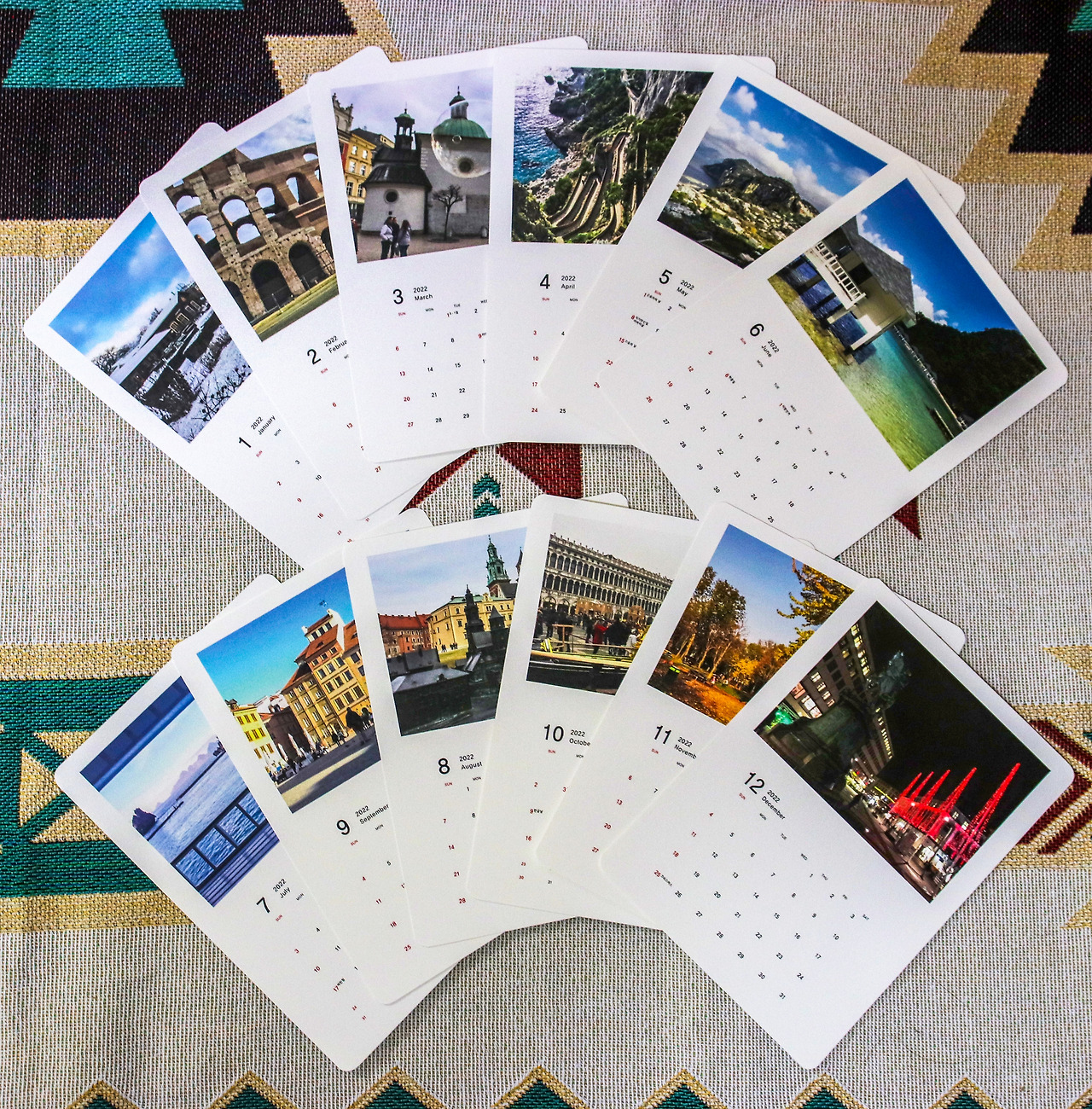 펀딩 리워드로는 여행 엽서와 시트 달력을 준비했습니다.