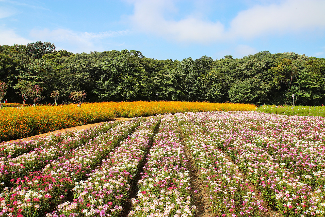 먼저 행사장 메인 스트리트를 중심으로 좌, 우 두 스폿으로 나눴다. 왼쪽에는 상림꽃밭단지, 오른쪽은 산삼 항노화 체험 및 전시관과 행사장이 있었다. 그렇다면 일단은 꽃밭부터. 꽃밭은 그냥 사진만 잘 찍으면 될 것이기에 쭉쭉 빠르게 치고 올라갈 생각이었다. 하지만 내 사진 실력을 간과했다.(A매거진 기자님 따라다니면서 근자감만 늘어 있었다.^^;;) 원하는 결과물이 바로바로 나오지 않아 쭉쭉 치고 나갈 수가 없었다. 사진에 있어 (비록 잘 찍지는 못해도) 완벽주의적인 면이 있어 그냥 지나칠 수가 없었다. 원하는 결과물이 나올 때까지 10장이고 100장이고 찍었다. 그렇게 꽃밭에서만 할애된 시간의 반 이상을 써버리고 말았다.