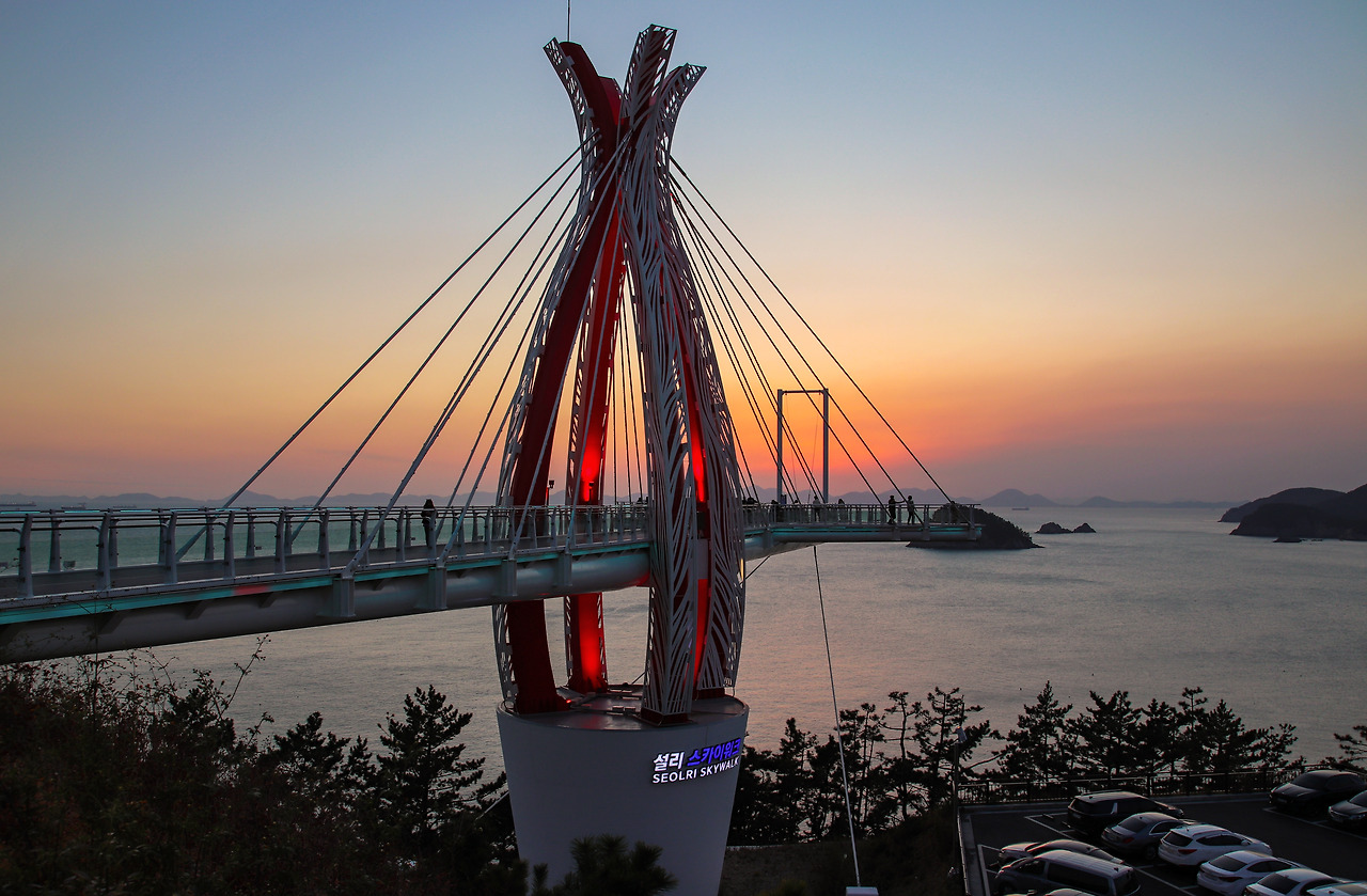 초고층빌딩은 아니지만 남해에도 스릴을 즐길 수 있는 곳이 있었다. 설리스카이워크. 생긴 지 얼마 되지 않은 신상 전망대로 이곳에서 즐길 수 있는 스릴은 두 가지, 인도네시아 발리섬 우붓 마을에 있는 발리 스윙의 갬성을 그대로 가져온 하늘 그네와 바닥이 뻥! 뚫린 듯 투명 유리로 된 스카이워크다. 사실 설리스카이워크를 방문한 건 스릴도 스릴이지만 남해의 노을을 보기 위해서였는데 내가 누구인가? 자칭 스릴성애자 아닌가? 나의 관심은 매일 보는 노을보다는 하늘 그네와 투명 유리바닥으로 향했다. 하지만 아쉽게도 하늘 그네는 운영시간이 다되어 장사를 접고 있었다. 하는 수 없이 그네는 포기하고 이제 유리바닥으로 관심을 돌렸다. 유리바닥 위를 걸으며, 그리고 바닥에 앉아 사진을 찍었다. 누군가는 이런 나를 보며 무서워했고, 누군가는 대리만족을 느끼는 듯했다. 하지만 정작 난 아무것도 느끼지 못했다.ㅠㅜ 나에게는 너무 낮은 수준의 스릴이었으니까. 높이 38m, 우리 집 뒷산보다도 낮았다. 유독 하늘 그네가 아쉬워진 이유다. 그래도 그네는 좀 스릴이 있지 않았을까? 스릴을 즐기기에 설리스카이워크는 내겐 너무 순한 맛이었다. 저 멀리 노을이 지고 있는 잔잔한 남해 바다처럼.