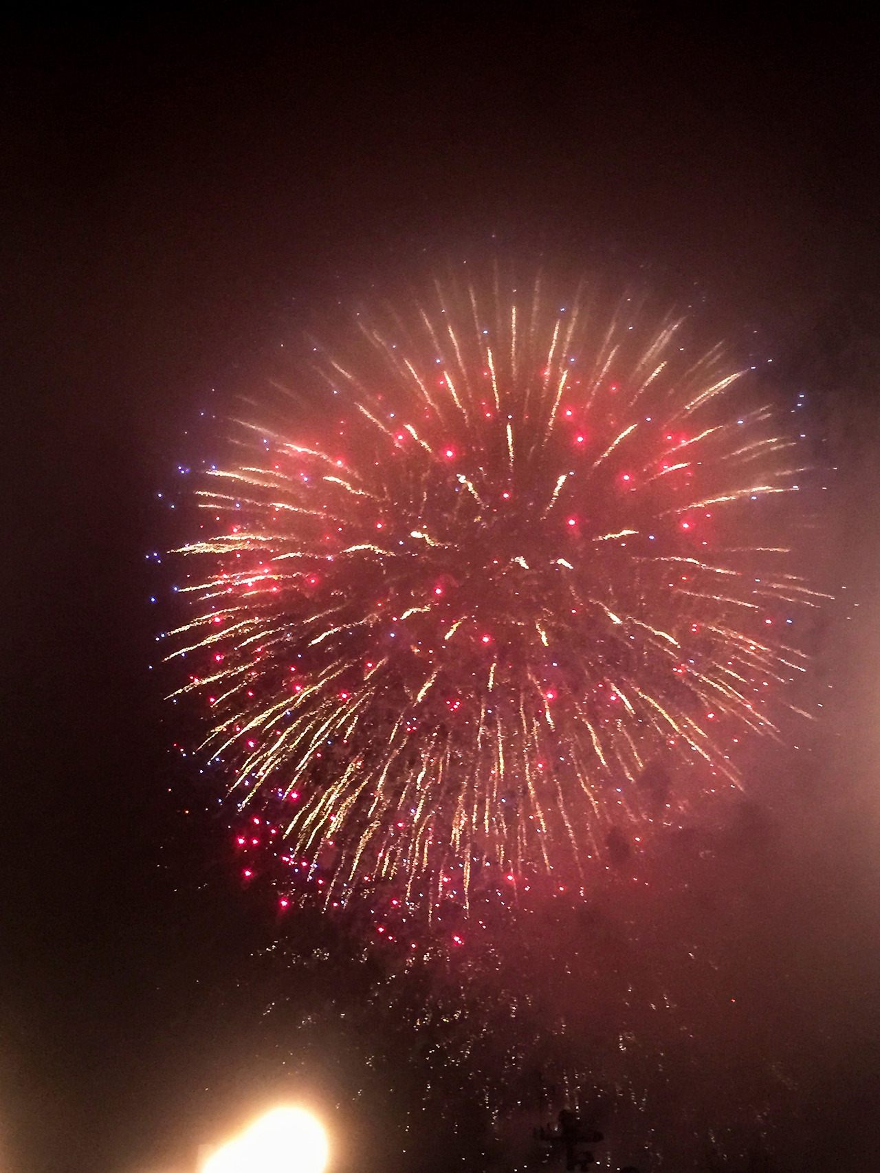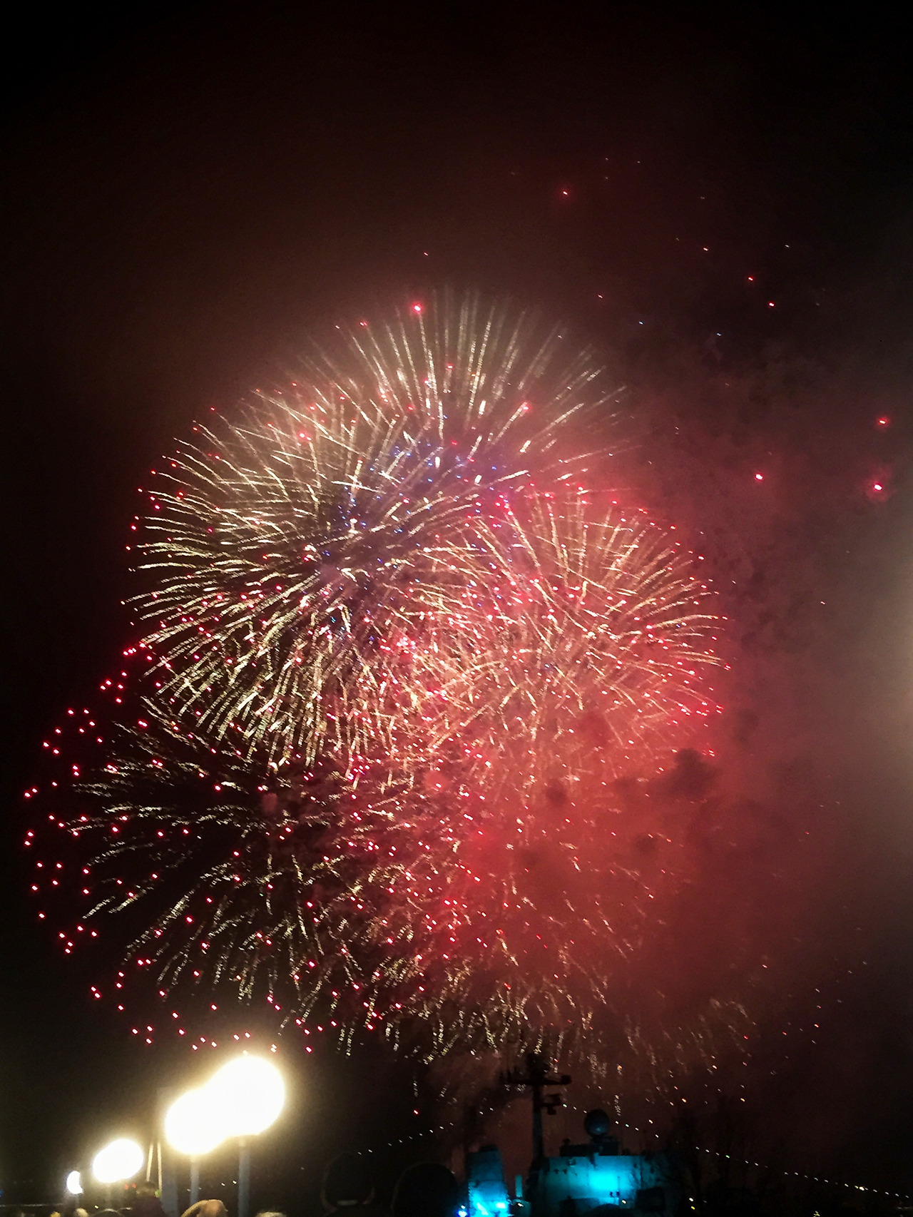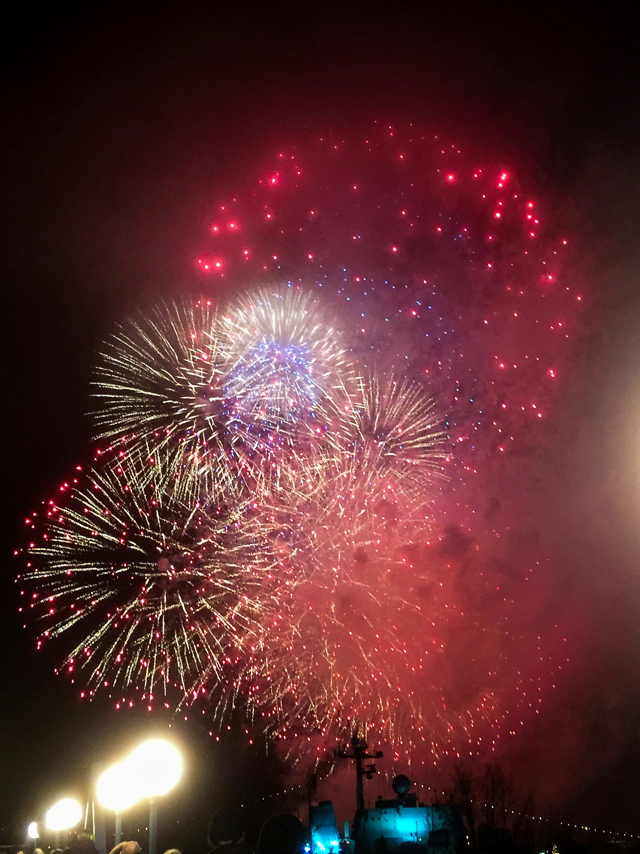 광란의 도가니 와중에 고상한 연회를 즐기는 한 무리도 있었다. 와인을 병째로 들고 다니며(30년 남짓 인생에서 와인 병나발은 처음 봤다.) 그대로 입으로 마시는가 싶었는데 다른 한 손에 있는 와인잔에 따랐다.(병나발은 아니었지만 잔까지 챙겨 온 정성이 대단하다) 6·25 때 난리는 난리도 아닌 난장판 중에도 입가에 미소를 띠며 흔들림 없이 와인을 즐기는 모습이 대단하다는 말로는 부족하고 존경스럽기까지 했다. 스웨덴에도 역시 별난 사람들은 있구나. 육지 못지않게 하늘도 아수라장이었다. 대체 불꽃을 얼마나 준비한 건지, 당최 끝날 줄 모르는 불꽃 파티가 계속되는 와중에 어디선가 하나둘 홍등까지 나타나기 시작했다. 도저히 제정신으로는 즐길 수 없는 분위기에 나도 그냥 정줄 놓기로 하고 미친놈처럼 마구 소리를 질러댔다.