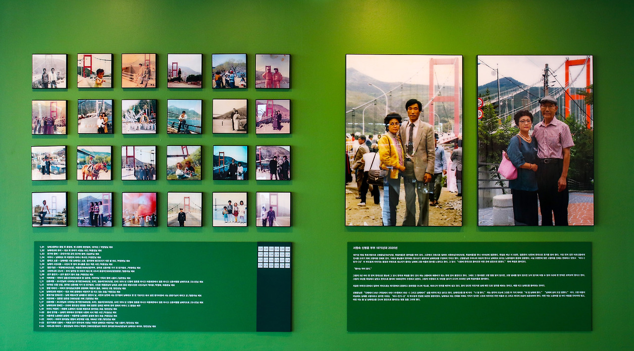 이처럼 눈으로 보이는 향수뿐만 아니라 눈에 보이지 않는 향수도 간직하고 있었는데, 바로 남해대교와 남해각에 얽힌 남해 사람들의 추억과 이야기다. 남해각 1층 상설전시관에 들어서면 가장 먼저 보게 되는 두 장의 부부 사진이 있다. 서원숙, 신병원 부부의 커플사진. 파독 광부와 간호사로 만난 부부는 한국에 현수교가 생겼다는 이야기를 듣고 남해에 놀러 와 사진을 찍었고, 한참 세월이 흐른 뒤인 2020년 같은 장소에서 같은 포즈로 사진을 찍은 것. 무려 45년 만에 찍은 같은 장소 다른 느낌의 커플사진이다. 이 두 장의 사진이 곧 남해대교의 과거와 현재를 말해주는 듯했다. 요즘 이런 걸 보고 아카이브*라고 하던가? 남해대교는 단순히 남해와 하동을 이어주는 길 그 이상으로 과거의 추억과 현재의 추억을 이어주고 있었다. 나 역시 세월이 한참 흐른 뒤 남해대교를 다시 찾아와 봐야겠다 생각이 들었다. 강산이 또 한 번 변하고 난 뒤의 남해대교와 남해각은 또 어떤 모습일지, 물론 아마도 그전에 남해여행을 또 오게 될 것 같기는 하지만.