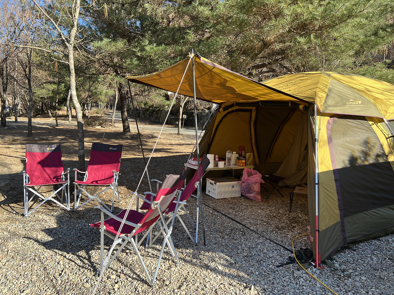 체크인 시간보다 약 1시간 일찍 캠핑장에 도착했다. 캠핑장 사장님께 양해를 구하면서까지 일찍 온 이유는 집짓기 때문. 캠린이들끼리 텐트를 칠 생각에 내심 걱정이 앞선 탓이다. 그도 그럴 것이 과거 여자친구와 차박을 하면서 타프만 2시간을 쳤던 웃픈 추억이 있다. 당시 추억을 팔아보자면 3시쯤 도착해 30분 만에 모든 세팅을 끝내고 늦은 점심으로 본격적인 먹방을 시작하려 했지만, 그놈의 타프가 뭐라고 무려 2시간의 정성을 쏟은 덕분에 점심은 스킵하고 바로 저녁을 먹게 되었다는 어이없는 전설.(>_<) 물론 이번 캠핑을 함께하는 지인들은 나보다 스마트할 거라 믿어 의심치 않았지만 그래도 어쨌든 모두 캠린이들이니 만일의 사태를 대비해 일찍 움직인 것이다.
