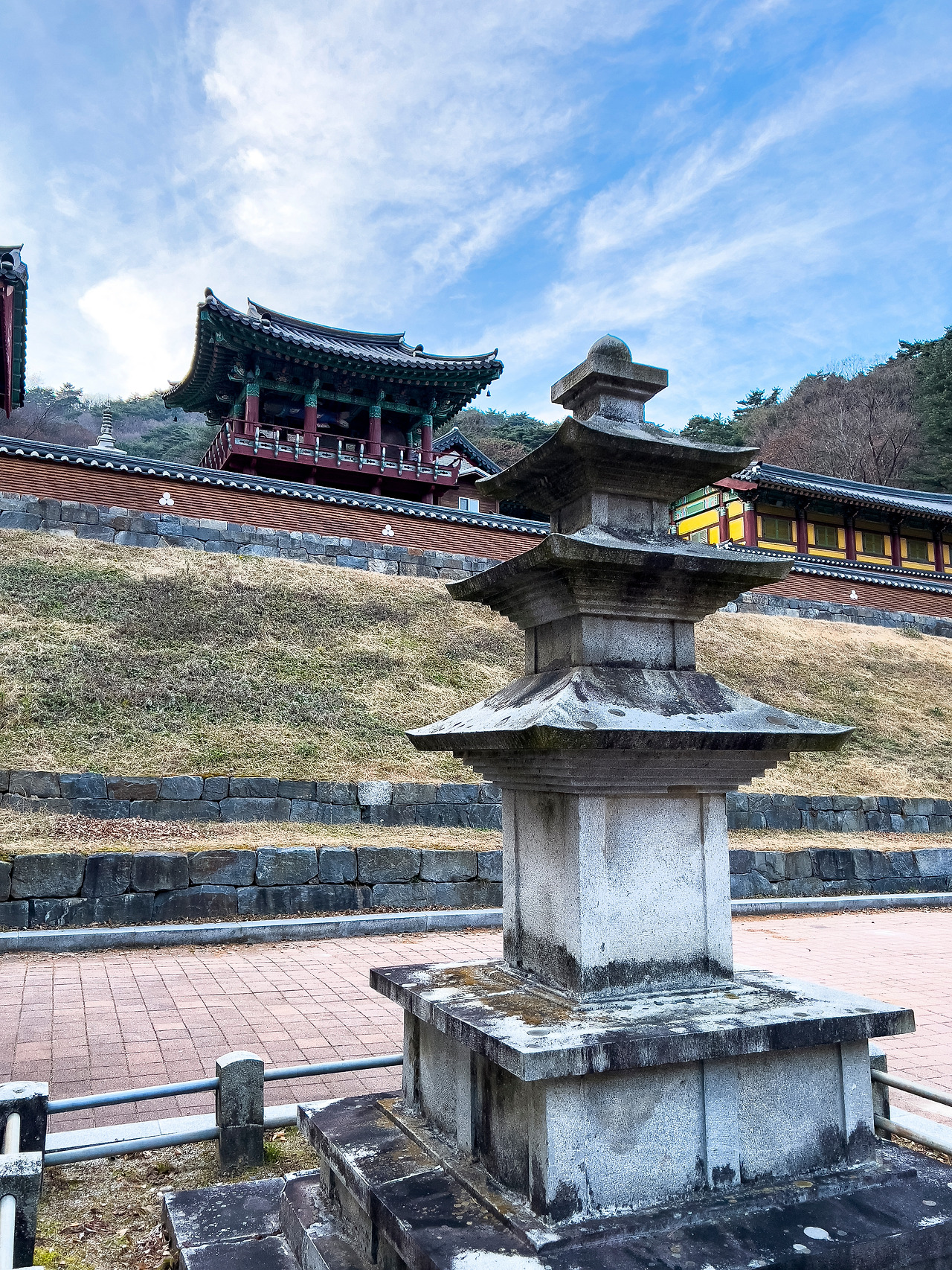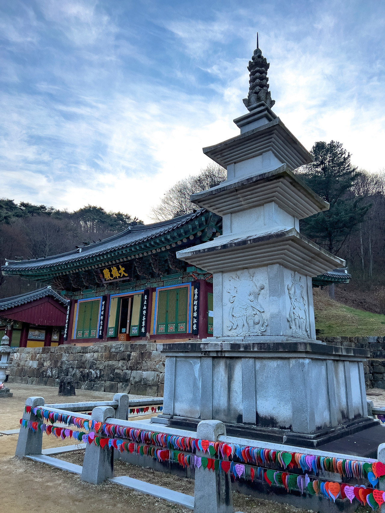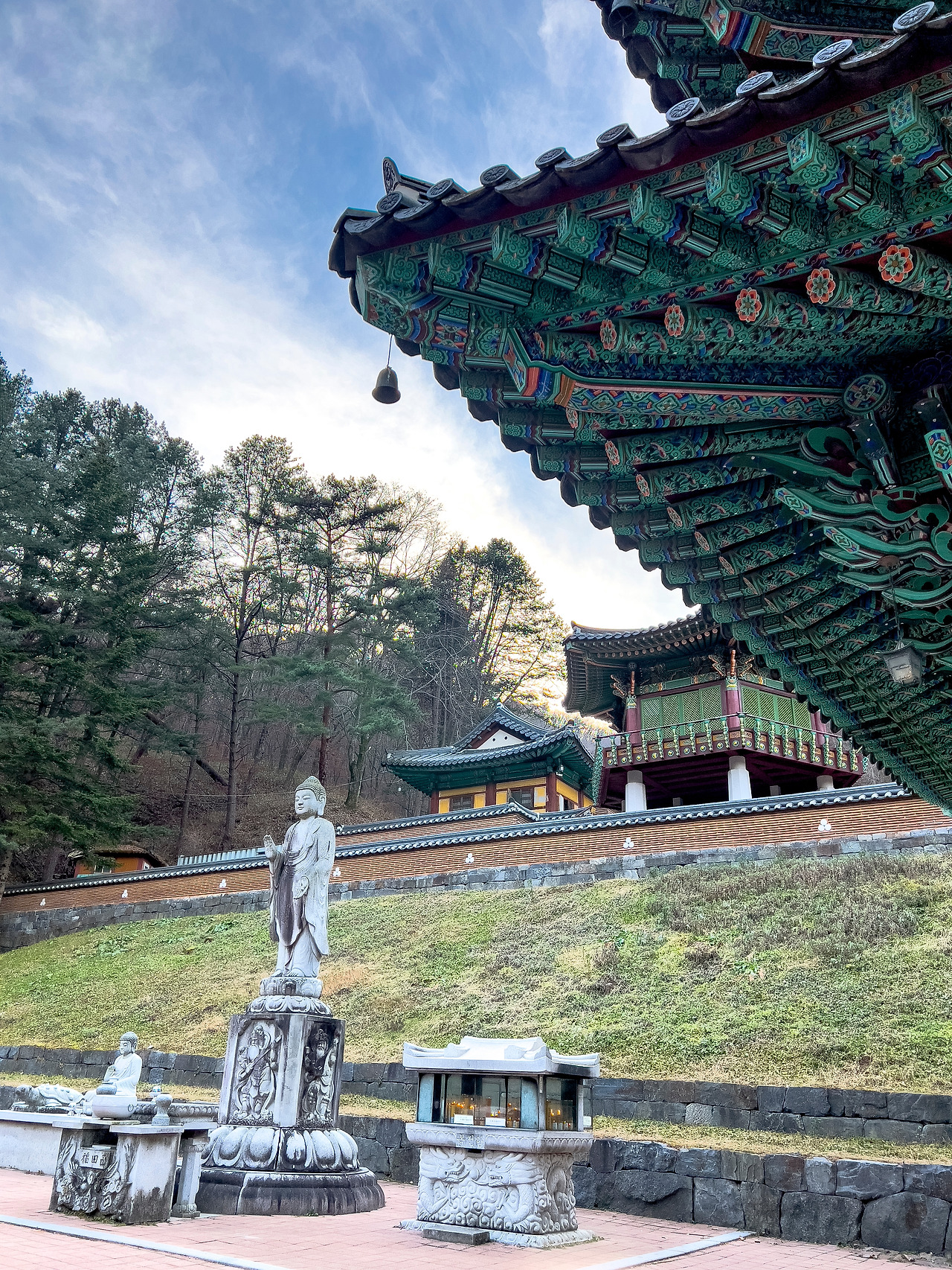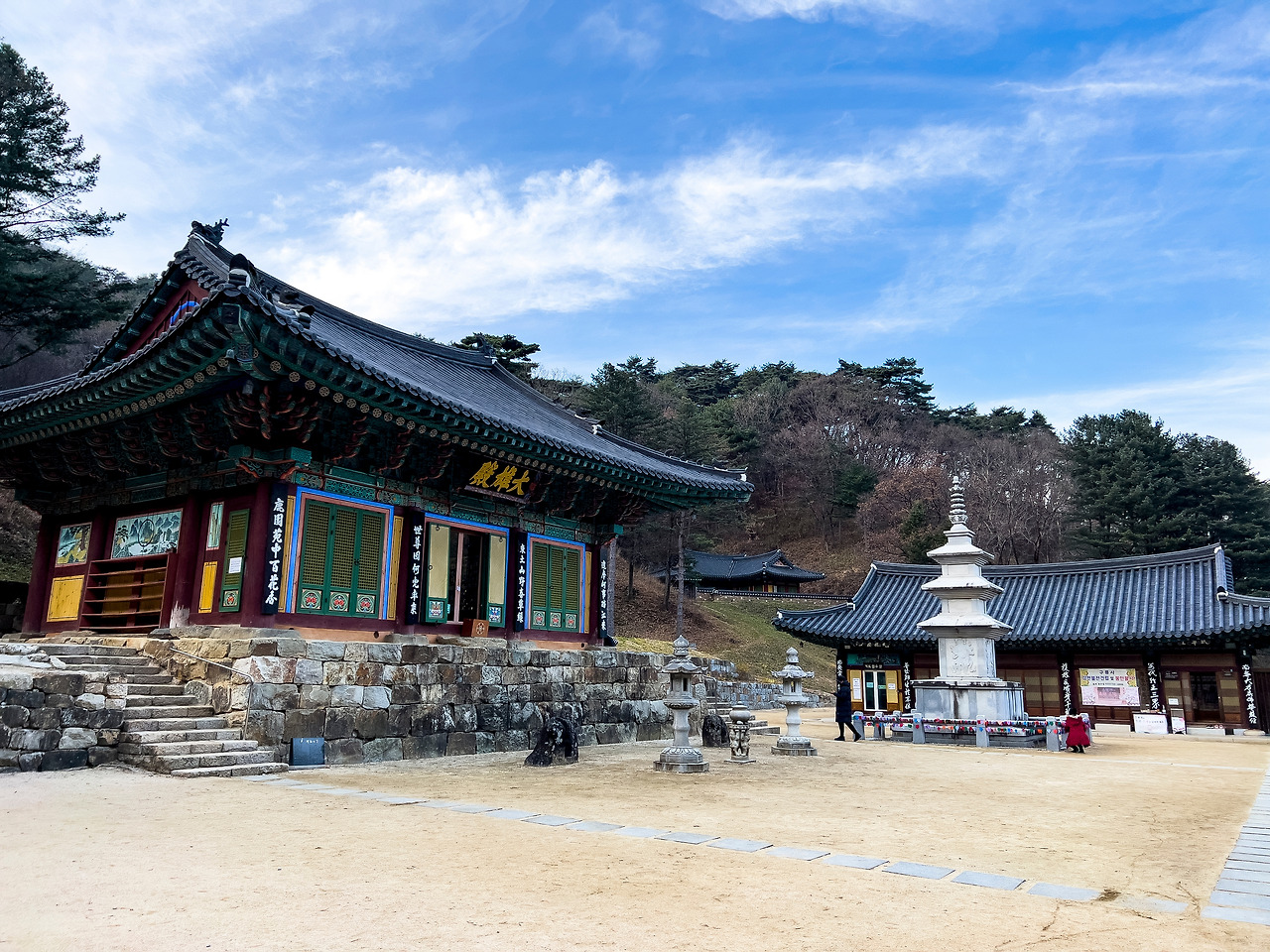 캠핑을 빙자한 혹한기 훈련을 마치고 서울로 돌아가는 길에 점심도 해결할 겸 원주에 들렀다. 생활에 달인에 나온 원주 3대 막국수 집에서 시원한 물막국수 한 사바리 때리고서는 바로 옆 카페에서 커피를 마시며 원주 관광안내지도를 줍줍했다. 원주에는 대체 뭐가 있을까? 사실 원주 하면 딱 떠오르는 곳은 '뮤지엄 산'과 '소금산 출렁다리'가 있기는 했는데 둘 다 사람이 너무 많을 것 같아 패스. 그 외에는 관광안내지도를 봐도 마땅히 당기는 데가 없었다. 그냥 갈까? 하다가, 그래도 모처럼 왔으니 한 군데라도 가보자고 하여 별 기대 없이(진짜 기대 1도 안 했다) 가게 된 곳은 치악산국립공원 자락에 있는 천년고찰 구룡사. 때마침 푸른 하늘이 처마와 잘 어울렸고, 치악산을 품고 있는 전경이 산속에 숨겨진 비밀의 장소처럼 고즈넉하면서도 신비로웠다. 그냥 갔으면 어쩔 뻔!? 원주에는 치악산국립공원이 있고 그 아래 구룡사가 있다.