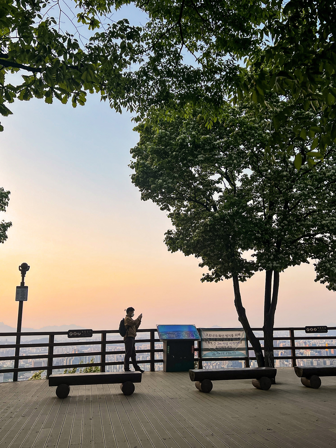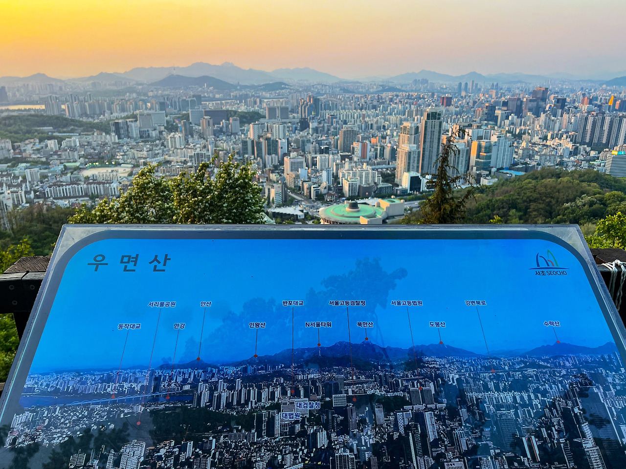 어느덧 10년도 더 된 일이지만 산사태라는 아픔을 가지고 있는 우면산은, 이후 잘 정비되어 현재는 경치 좋은 서울의 낮은 산으로 등린이들을 유혹하고 있다. 각 잡고 하는 등산이 아니어도 좋다. 동네 마실 나간 김에 한번 스윽 올라갔다 스르륵 내려와도 충분하다. 중간중간 쉼터가 많은 게 등린이들에겐 또 하나의 희소식. 아까시 쉼터, 팔배 쉼터, 태극 쉼터, 소망 쉼터, 유점사 쉼터 등 저마다 이름이 있어 쉼터 뽀개는 맛도 있다. 그중 소망 쉼터는 우면산 정상이다. 정상에는 정상석 대신 많은 사람들의 소망이 하나둘씩 쌓여 만들어진 소망탑과 정상의 높이인 293m를 표시한 나무 푯말이 있다. 제대로 된 정상석이 없는 것은 조금 아쉬우나 대신 제대로 된 정상뷰가 아쉬움을 달래준다. 강남은 물론 맑은 날에는 강북의 북한산, 도봉산, 수락산까지 보일 만큼 서울 전역을 아우르는 시티뷰를 볼 수 있다. 퇴근 후에 간다면 인생노을과 인생야경은 따놓은 당상!