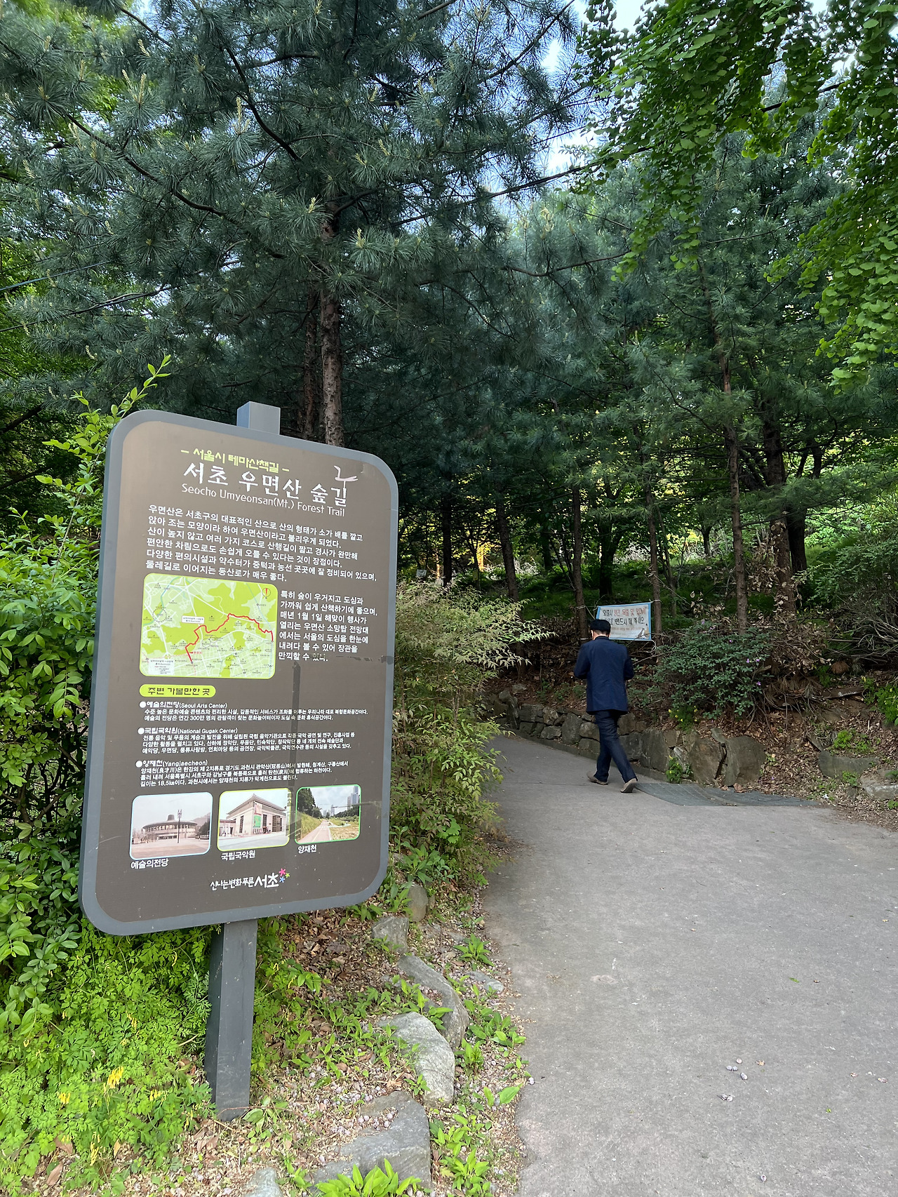 우면동-전망대-소망쉼터, 소망탐(정상)-대성사-예술의 전당 앞 | 1시간 30분