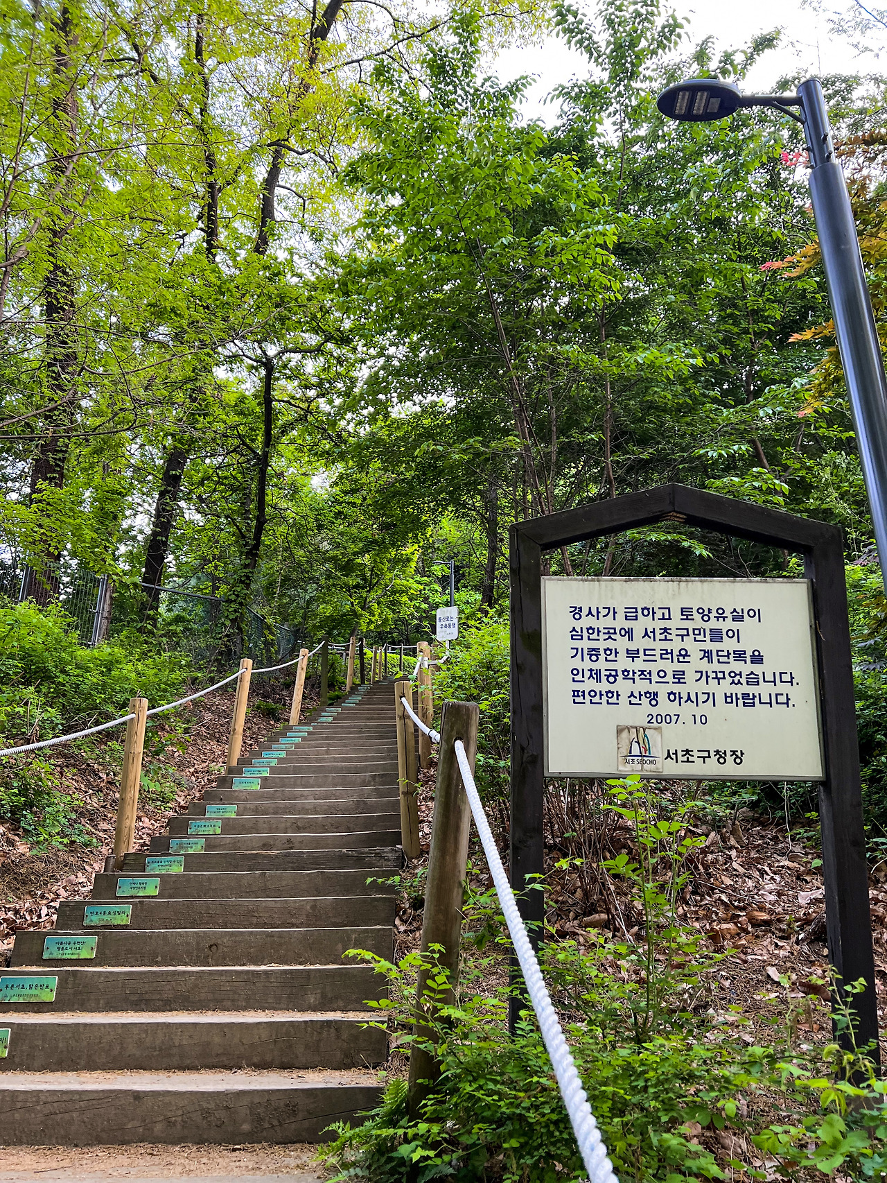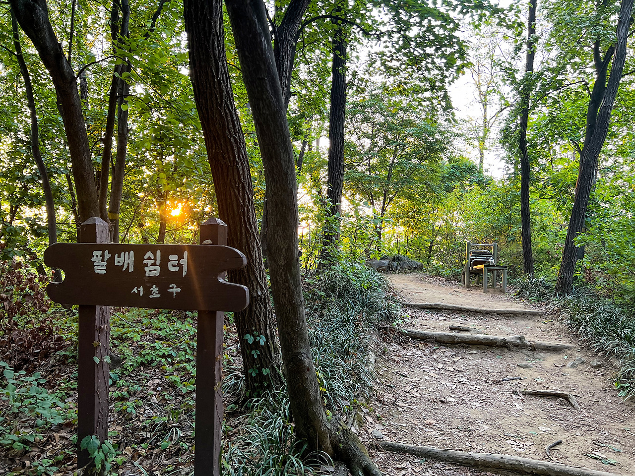 ★서초 우면산 숲길 초입-소나무숲-아까시쉼터-팔배쉼터-태극쉼터-소망쉼터, 소망탑(정상)-유점사쉼터-우면산 숲길 입구(방배동) | 1시간 20분