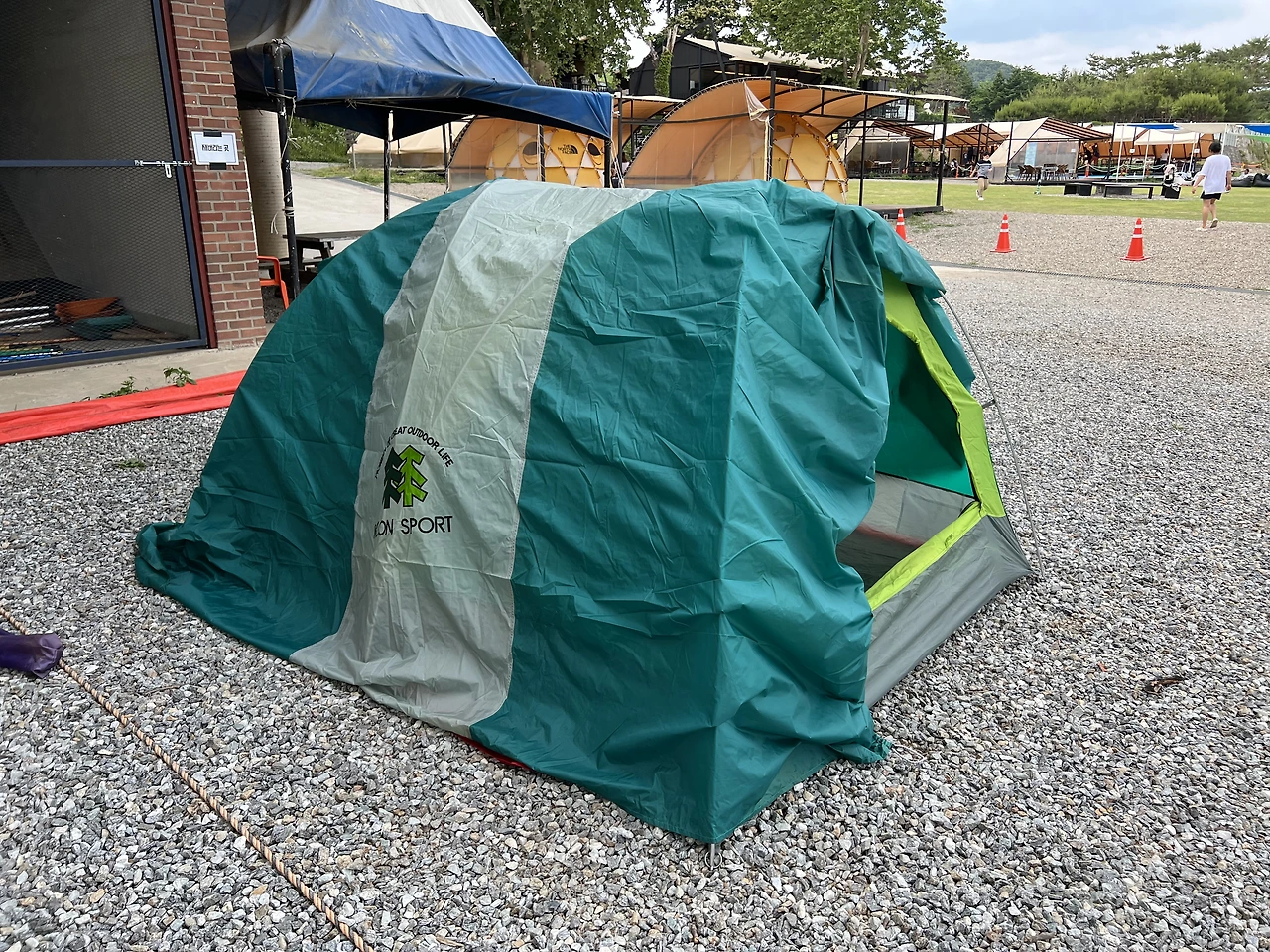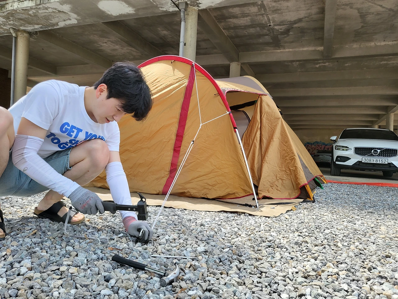 내친김에 눈피크 텐트는 접어두고 아빠 텐트에서 잘까 싶었지만 안타깝게도 최상급 보관 상태조차 커버할 수 없는 것이 있었으니, 팩이 문제였다. 플라스틱 팩인지라 파쇄석에는 박히지가 않았다. 갑자기 문득 어린 시절 아빠 텐트로 놀러 갔던 기억이 났다. 캠핑이기보다 계곡으로 피서를 가서 텐트를 치고 놀았었는데 아마 플라스틱 팩도 잘 박히는 흙바닥이었기에 가능하지 않았나 싶다.