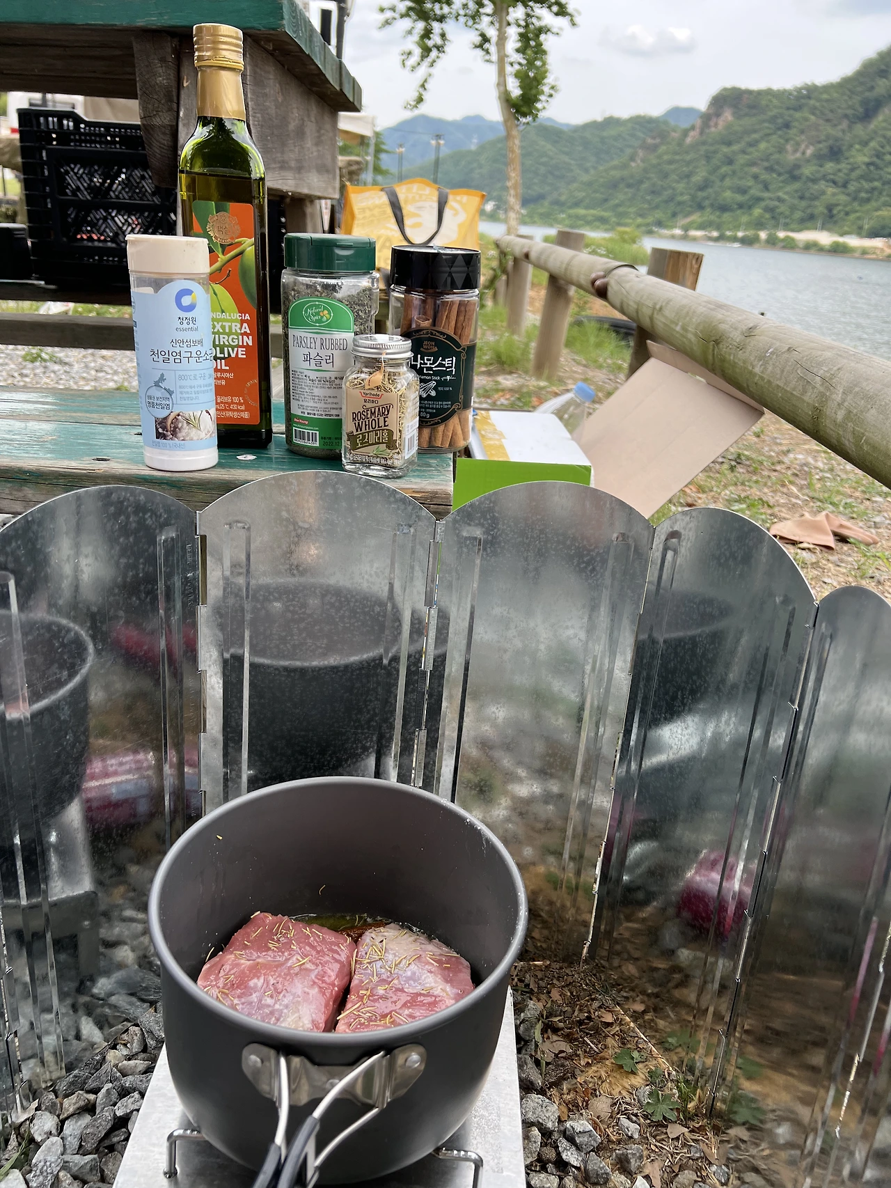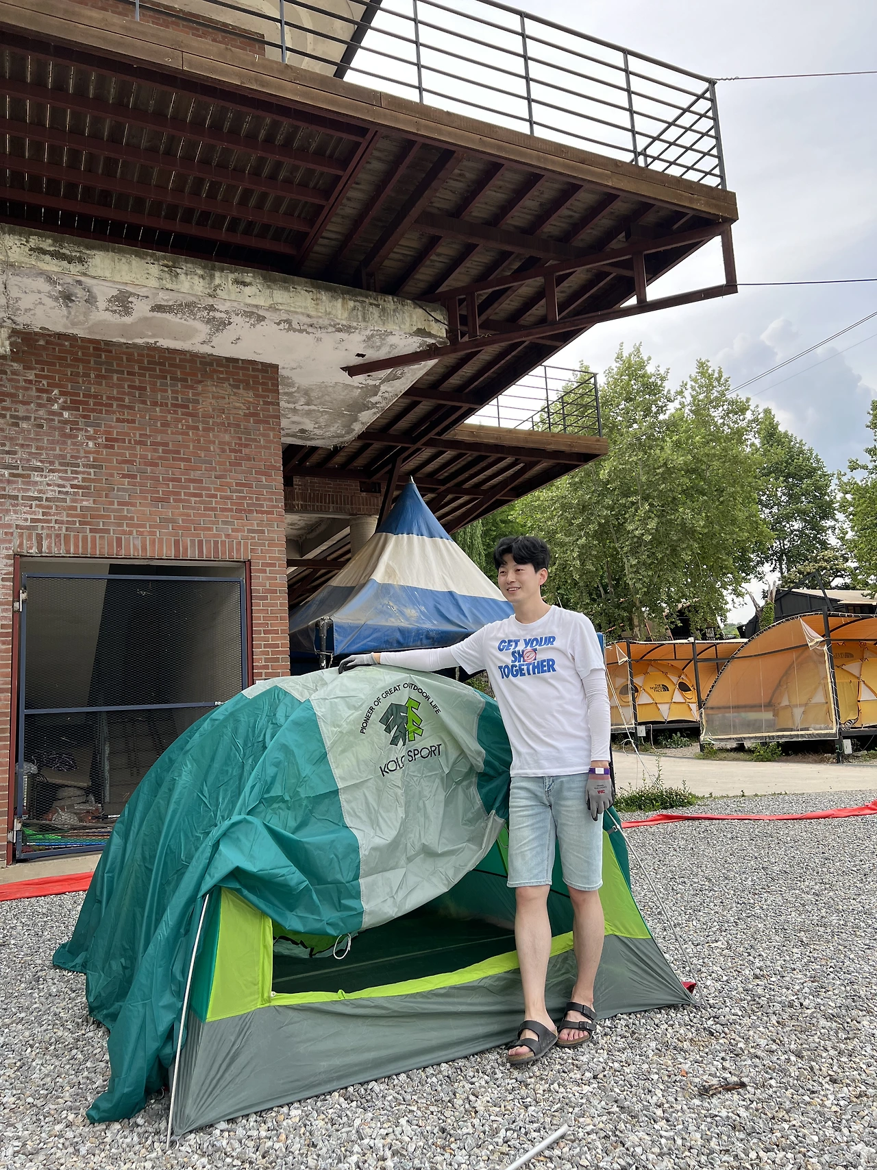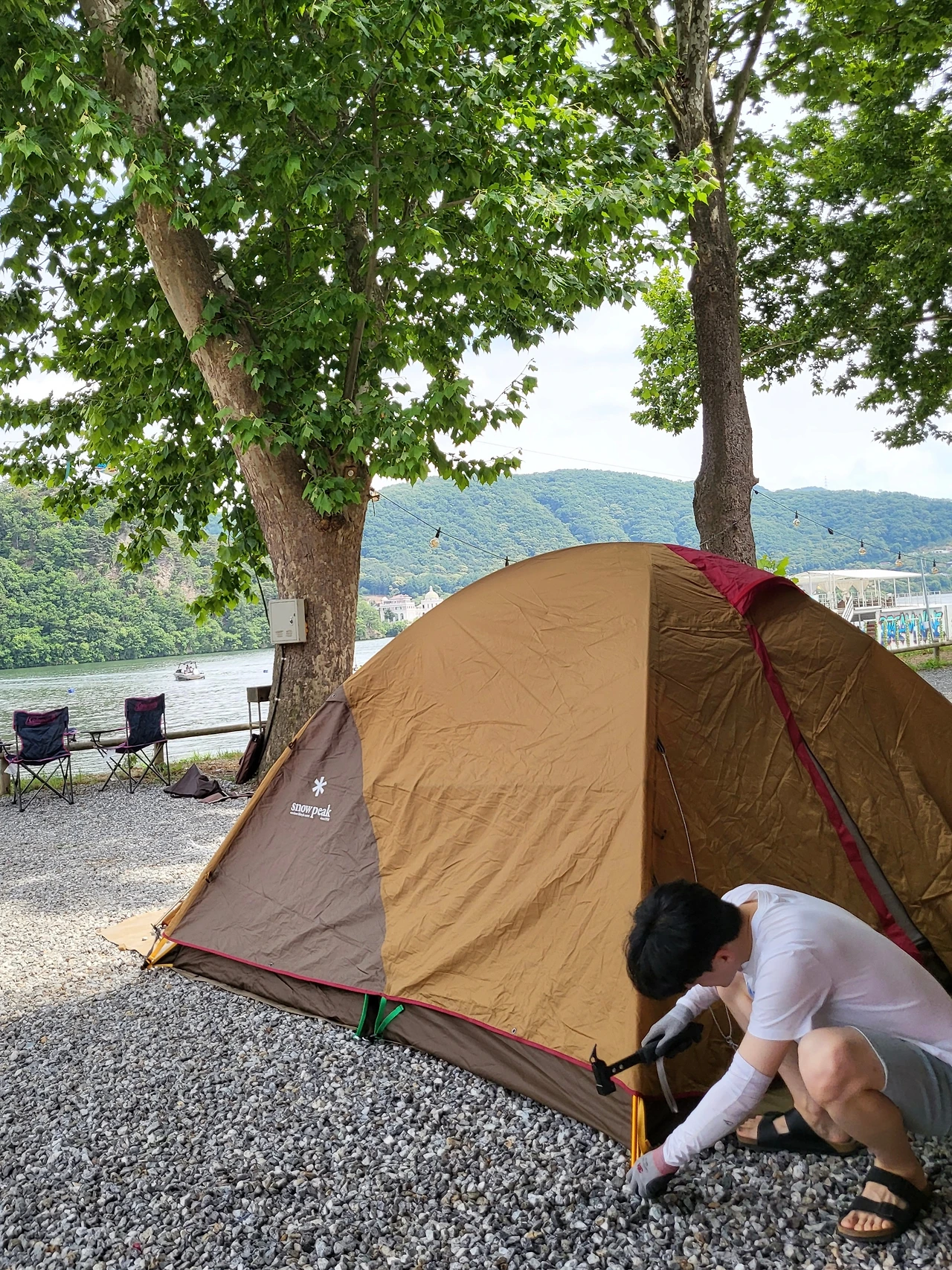 아빠 텐트와 함께 인증숏을 남기고 이만 철거했다. 무너뜨리는 건 순식간이었다. 바람 빠지는 풍선처럼 파르르 풀이 죽는 텐트를 보니 못내 아쉬웠다. 쇠 재질의 팩 세트를 꼭 사야겠다. 그래서 다음에는 아빠 텐트로, (마음만이라도) 아빠와 함께 캠핑을 해보련다. 다가오는 가을, 다음 캠핑이 기다려진다.