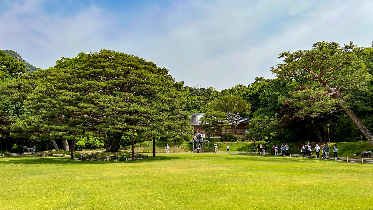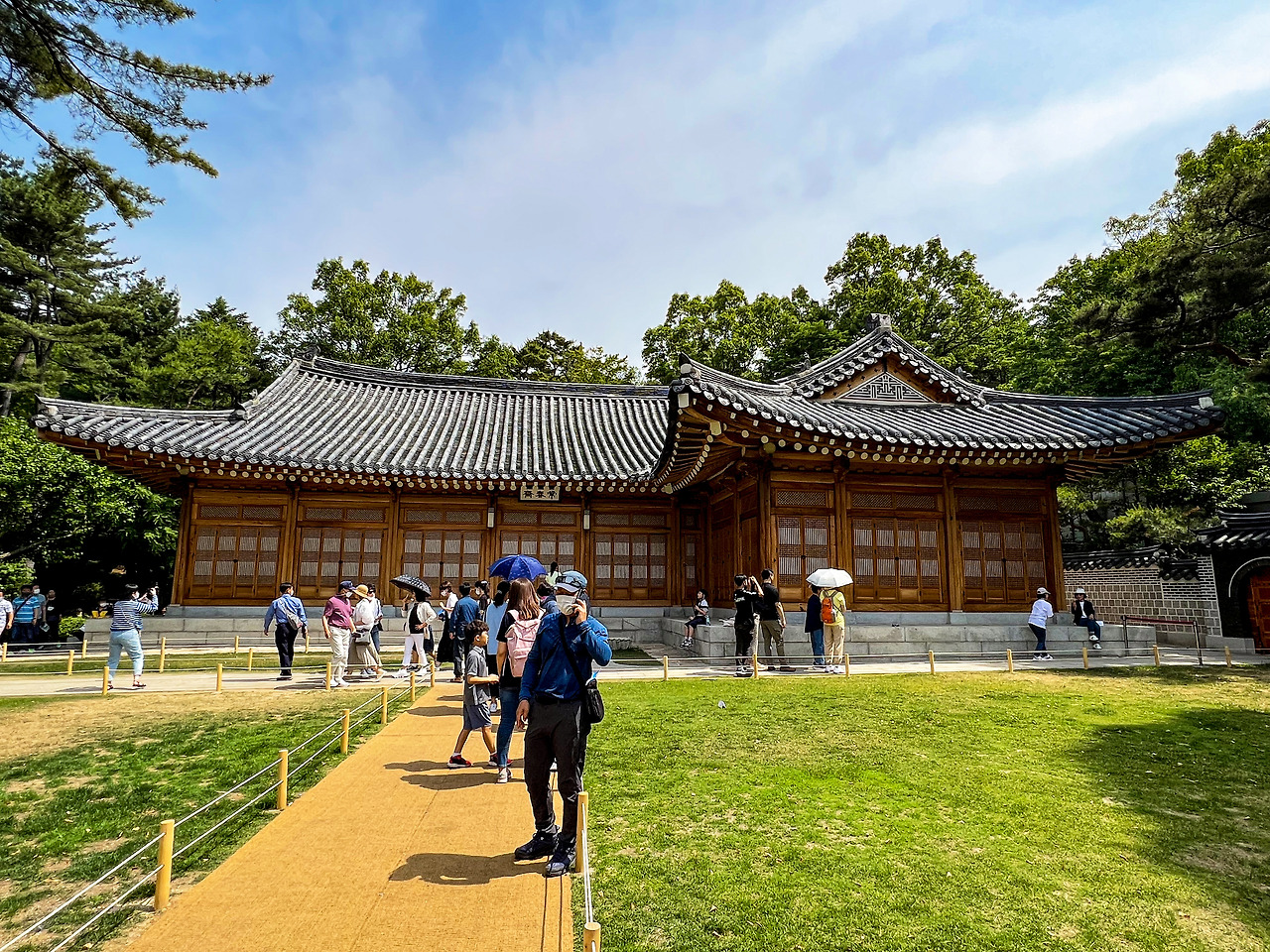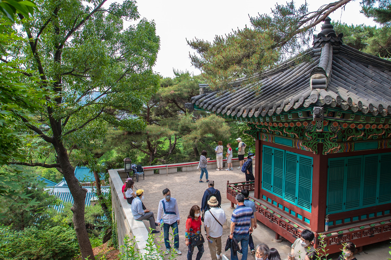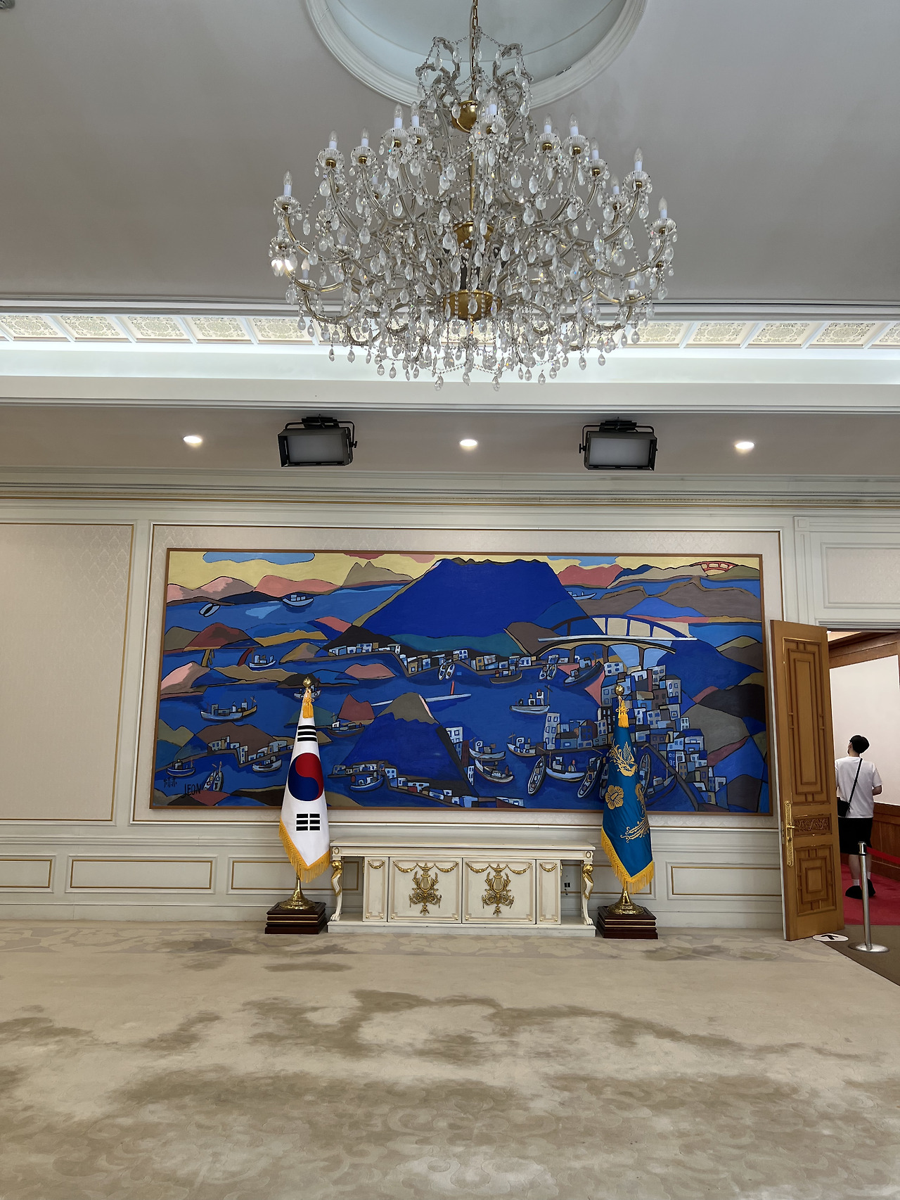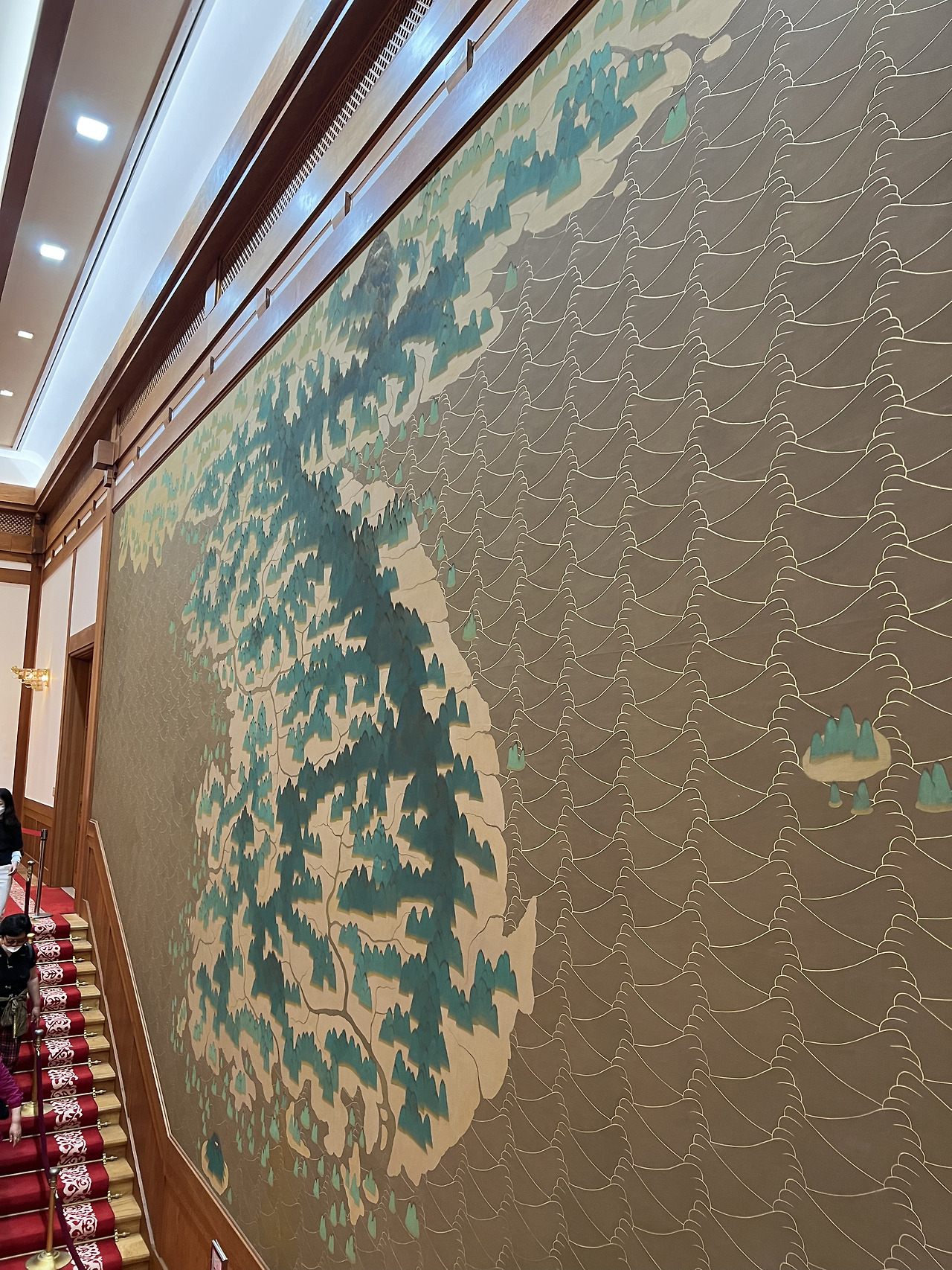 인증숏 미션을 성공리에 마치고 본관 입장 대기줄에 합류했다. 걱정했던 것과는 달리 생각보다 입장 속도가 빨랐다. 기다리면서 대정원 앞에서 못다 찍은 청와대 사진을 찍으니 시간 순삭. 어느새 청와대 본관 앞에 다다랐다. 줄 서는 내내 청와대만 바라보고 서있다가 청와대 앞에 도착하니 이제야 청와대 맞은편으로 펼쳐진 서울의 모습이 눈에 들어왔다. 아마 대통령님을 비롯한 청와대 관계자들은 이 아름다운 서울을 매일 보았겠지. 대정원, 종로의 빌딩 숲과 남산이 한 프레임에 담겨 자연과 도시가 공존하는 서울의 매력이 잘 드러났다. 뒤로는 북악산이 있고 앞으로는 청계천이 흘러 도시가 발달해 있는, 이것이야말로 배산임수(背山臨水)의 정석. 과연 명당이로소!