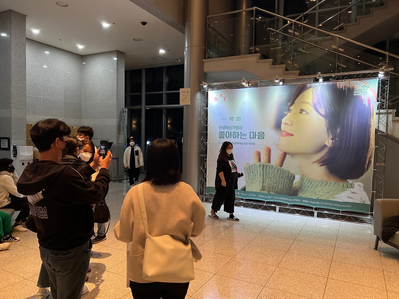 퇴근 후 하남시청역에 도착하니 시간이 2시간 남짓 붕 떠있었다. 역 근처 밥집에서 간단히 저녁을 때운 후 카페에서 시간을 때웠다. 저녁시간이 조금 지나면서부터 카페에 사람들이 차기 시작했는데 아까 밥집에서 본 사람들이었다. 왠지 느낌이 나랑 목적이 같은 사람들 같은 느낌적인 느낌. 그리고 역시나, 공연시간이 다가와 하남문화재단으로 출발하려는데 카페 분위기가 어수선해지더니 다들 약속이라도 한 듯 자리를 뜰 채비를 했다. 예감이 맞았다. (생판 모르는 사람들이지만)우리는 다 같이 안녕하신가영 콘서트를 보러 하남문화재단으로 향했다.