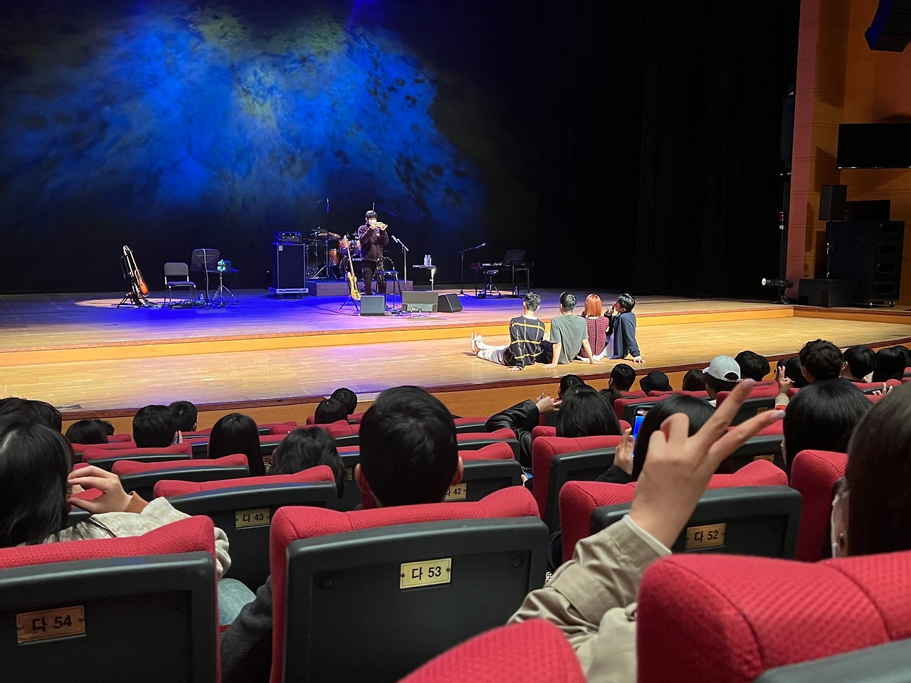 얼마만의 제대로 된(?) 공연장이던가. 영화관도 잘 안 가던 요즘이었기에 대극장의 분위기가 제법 웅장하게 느껴졌다. 하남문화재단 검단홀(대극장)은 층고가 높아 답답한 느낌이 없어 좋았다. 좌석 간 공간도 충분하거니와 의자 상태도 거의 새삥이라 오랜 시간 공연을 보기에 전혀 무리가 없었다.