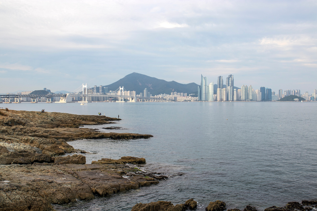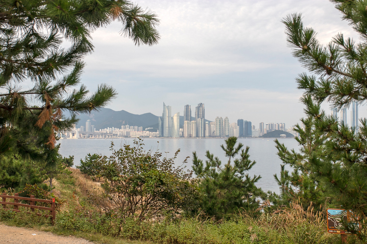 이기대 공원 주차장에 도착했다. 예상대로 바닷가 쪽으로 5분 남짓 걷자 탁 트인 부산 바다와 함께 광안대교, 해운대 마린시티가 보이는 이기대 갈맷길이 나왔다.