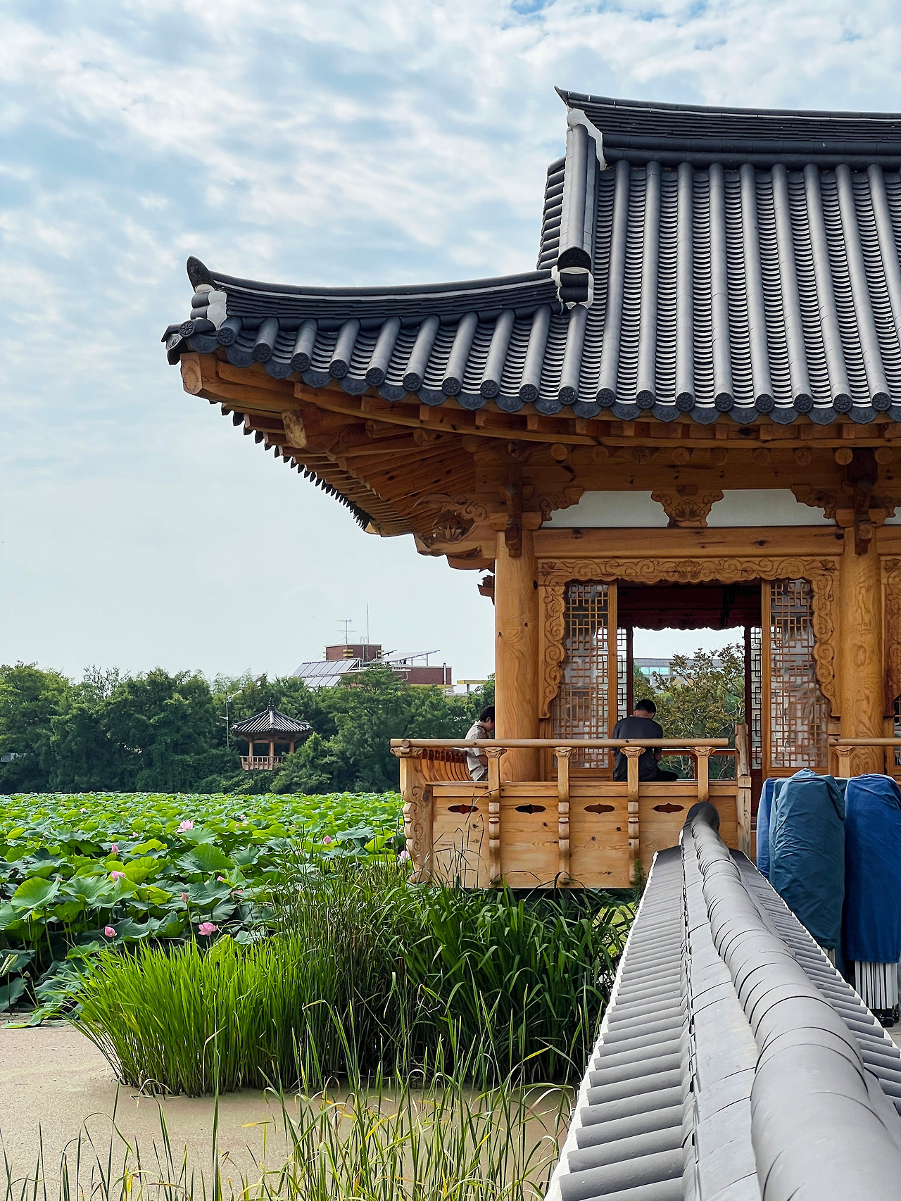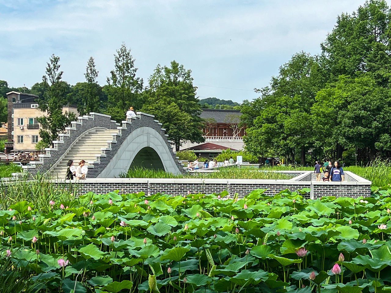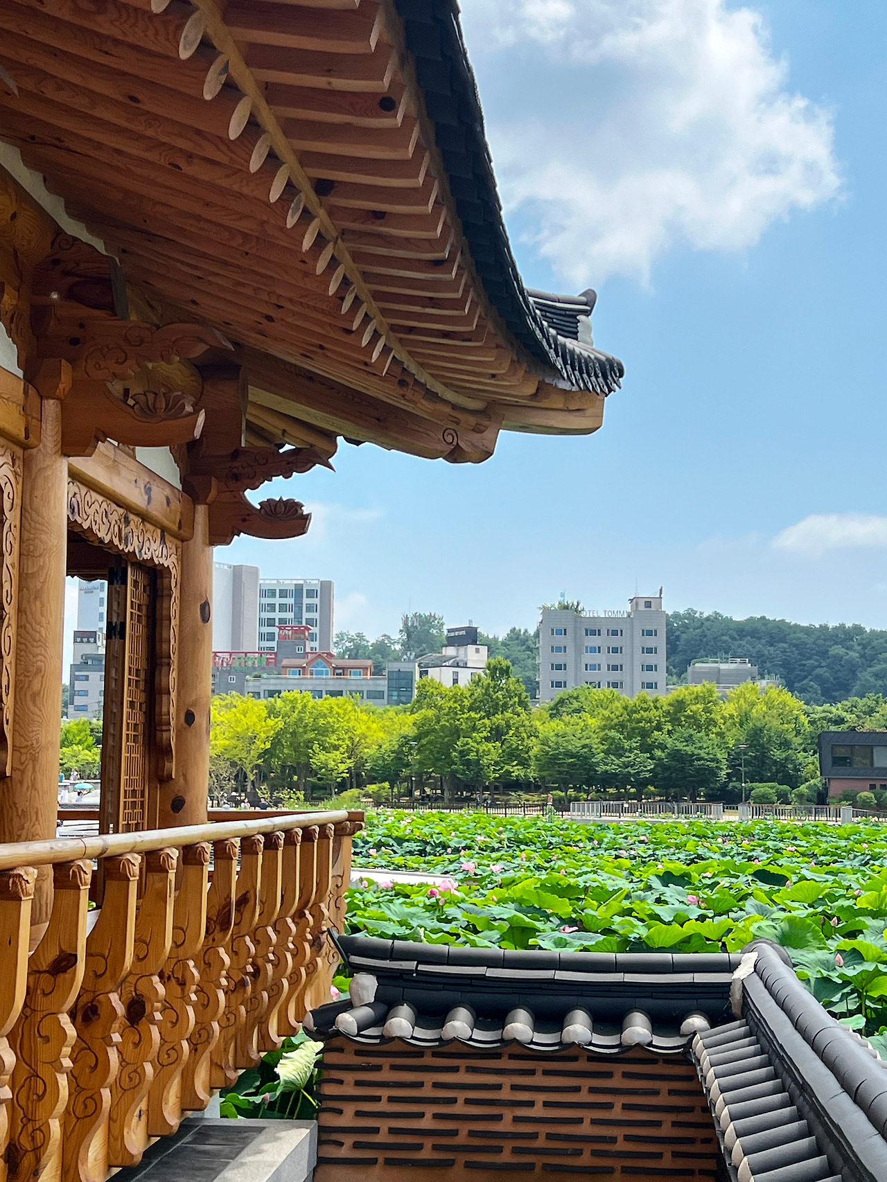 전주 하면 가장 먼저 떠오르는 건 뭐니 뭐니 해도 한옥마을. 그래서 전통의 도시 아닌가. 그에 걸맞게 전주책쾌가 열리는 장소 역시 전통적인 공간이었다. 한옥으로 된 연화정도서관이다. 기존의 연화정을 재건축해 만든 개관한 지 1년 남짓 된 신상 도서관으로 전주에서도 이제 막 알려지고 있는 전주 명소였다. 특히 SNS에 한옥과 연꽃을 함께 액자 배경으로 삼아 찍은 인증숏들이 많이 올라와 있었다.