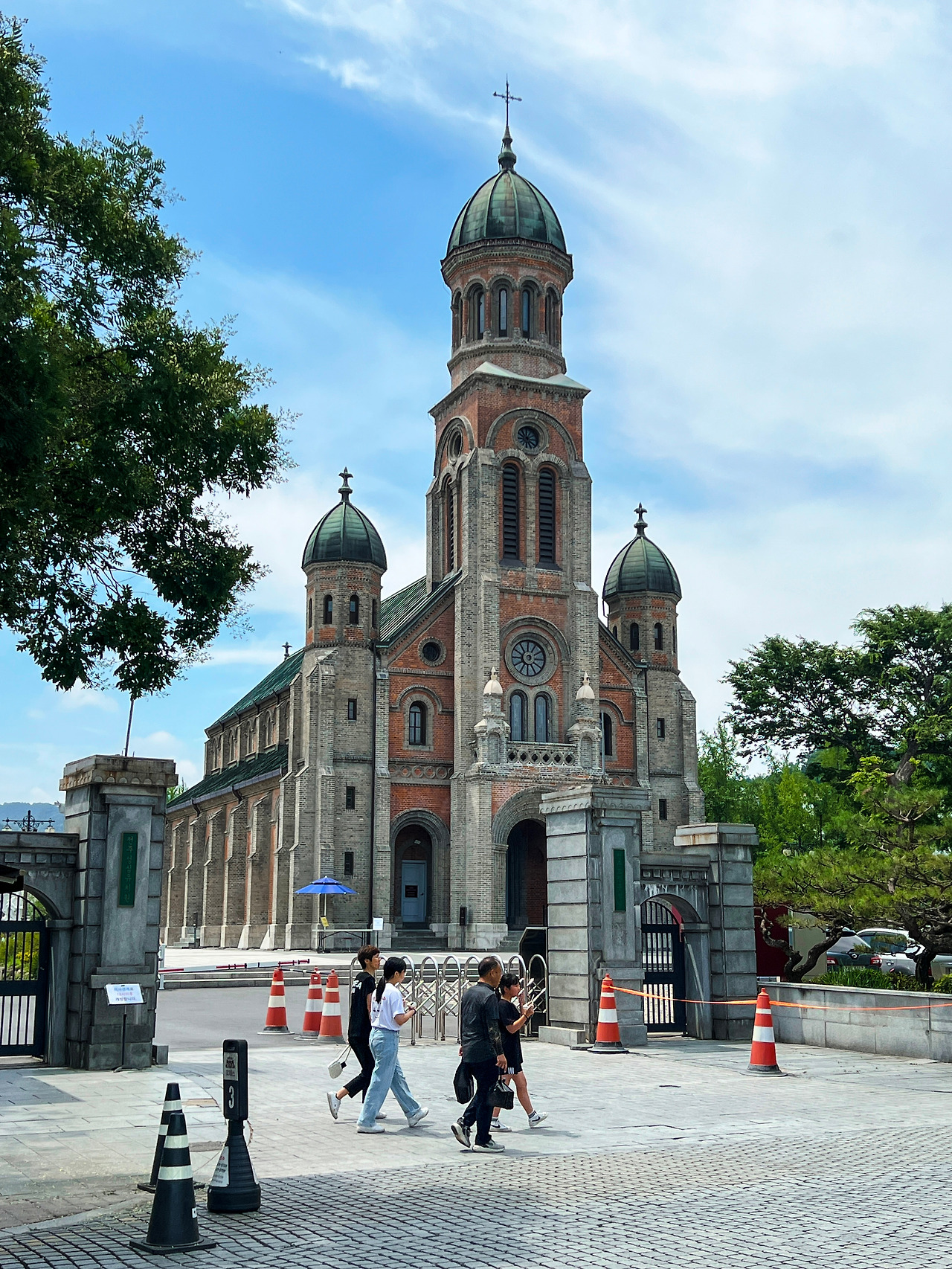 카카오프렌즈샵을 나오자마자 전동성당으로 향했다. 미사 중이라 안으로 들어갈 수는 없었다. 아쉽지만 주변을 맴돌며 성당을 감상하는 것만으로 만족해야 했다. 어쨌든 잠시 일탈 중이기에 미사가 끝날 때까지 기다릴 여유까지는 양심이 허락하지 않았다.(물론 일탈 중 양심을 논하는 거 자체가 모순이지만^^;;)