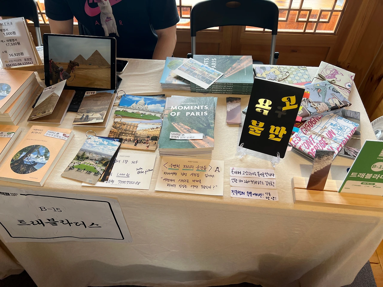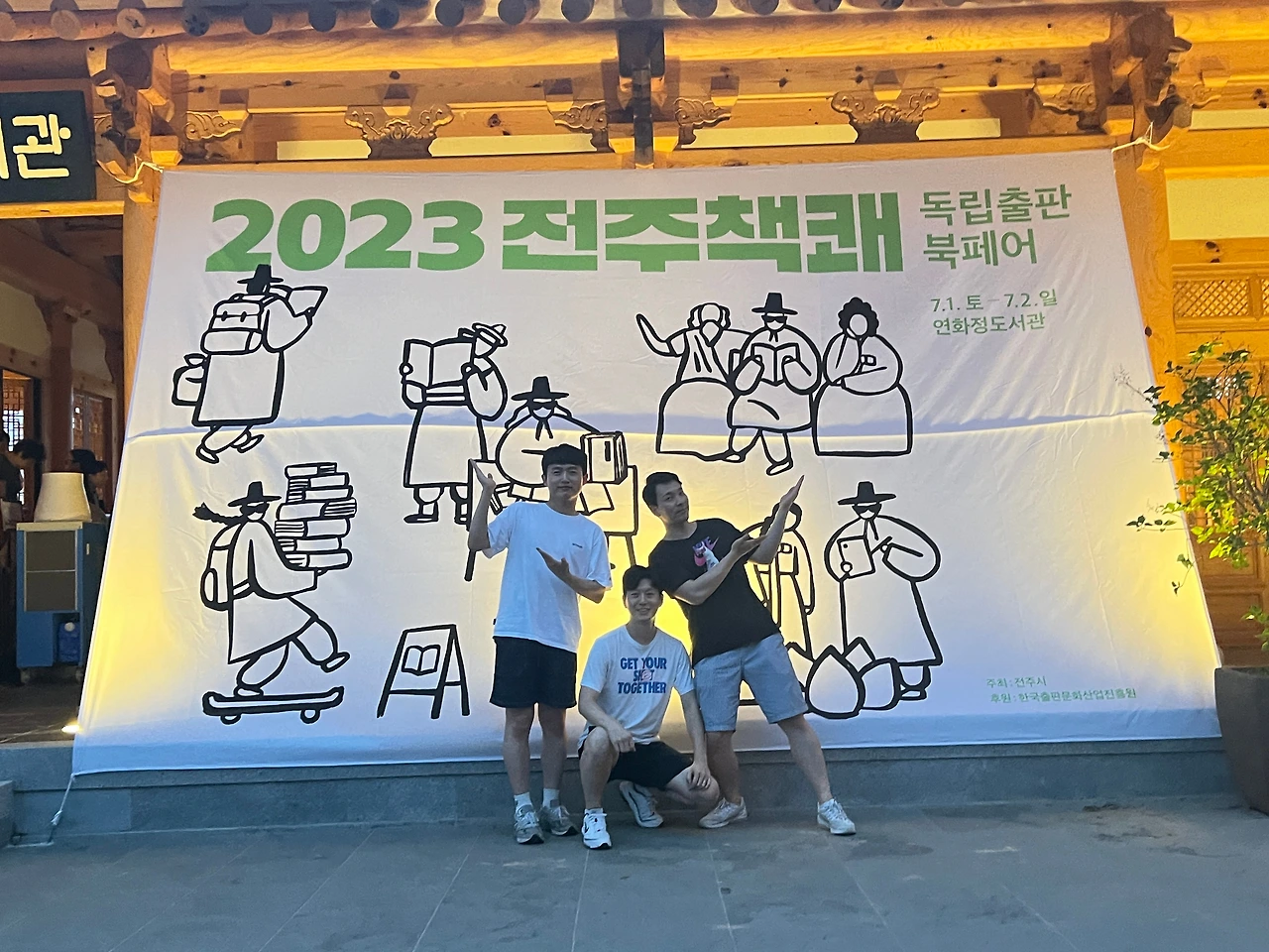 지난 7월의 첫째 날. 전주 최초로 독립출판 마켓, 북페어가 열렸다. 이름하야 "2023 전주책쾌". 전주는 다들 아실 테고 책쾌는 뭔고 하니, 책쾌(冊儈)*는 우리나라에서 고유하게 부르던 책장수다. 고로 전주책쾌는 전국의 책장수들(독립출판작가 혹은 서점)이 전주에 모여 여는 책시장이다. 일종의 5일장 같은 거라고 보면 되겠다. 다만 5일에 한 번이 아닌 365일에 한 번이라는 게 함정.(365일에 한 번이 앞으로 쭉 이어질지는 아직 모른다^^;;) 아무튼 올해 최초로 전주시가 야심 차게 준비한 만큼 규모나 내용적인 면에서 평균 이상급의 북페어임에는 틀림이 없을 터. 이런 큰 행사를 놓칠 수 없기에 나는 피를 나누지는 않았지만 여행을 함께 나눈 동생들(배작가, 페른베)과 함께 트래블라더스(팀명)로 전주책쾌에 참가했다.