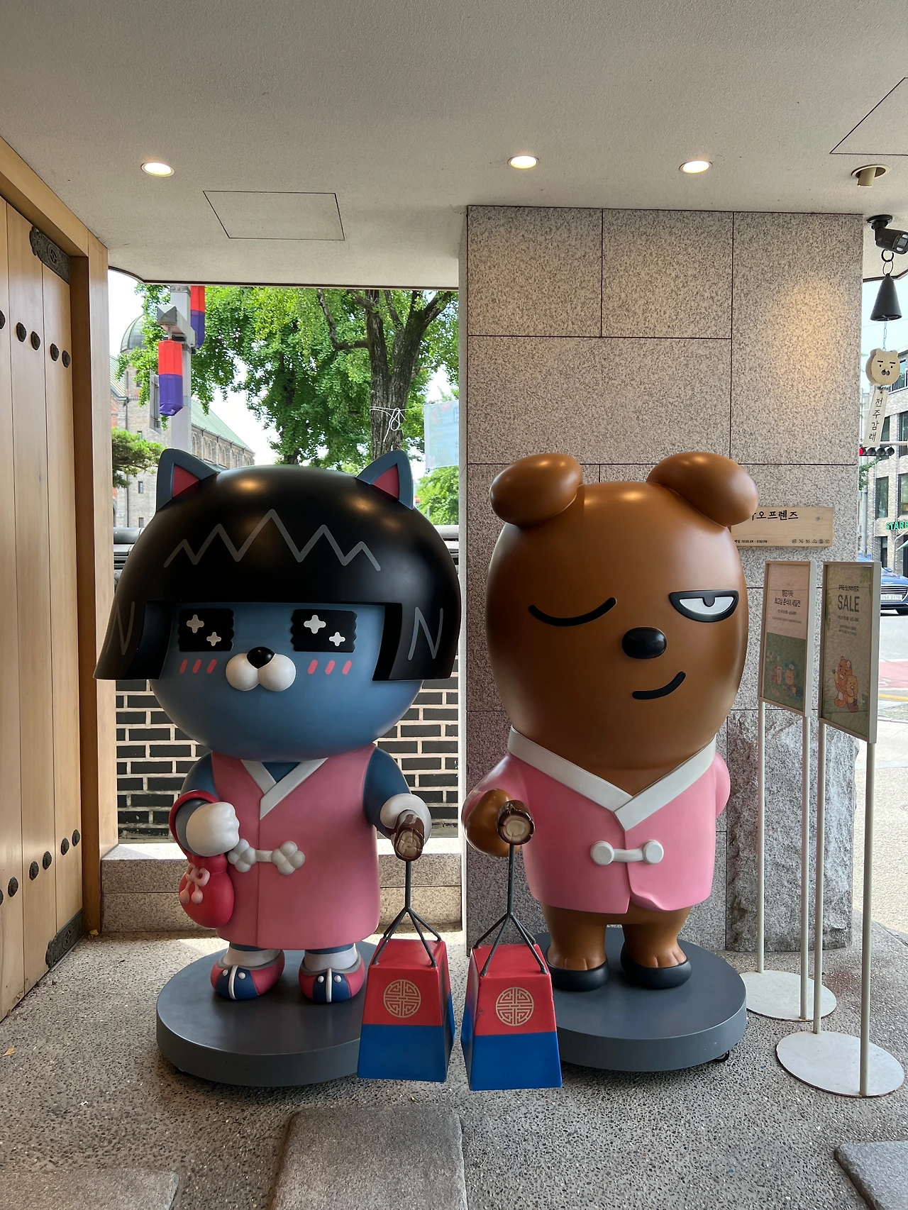 가장 먼저 향한 곳은 전동성당 맞은편 귀여운 가게, 카카오프렌즈 전주한옥마을점이다. 귀여운 것을 보고 그냥 지나치기란 쉽지 않은 법. 가게 외관에서부터 다른 지역과는 달리 우리나라의 전통을 입힌 귀여움을 뽐내고 있었다. 기존에 판매하는 상품은 물론 한복과 한옥이 가미된 전주 에디션 상품들이 눈길을 끌었다. 그중에서도 역시 요즘 대세는 춘식이. 어떤 상품이든 단연 춘식이 전주 에디션이 압도적으로 귀여웠다. 귀여움에 홀려 끊임없이 돌아가는 눈이 돌아갔지만 지갑을 잘 사수한 덕에 충동적으로 구매를 하지는 않았다. 나는 그저 더워서 들렀다 가는 나그네일 뿐. 땀 잘 식히고 갑네다~
