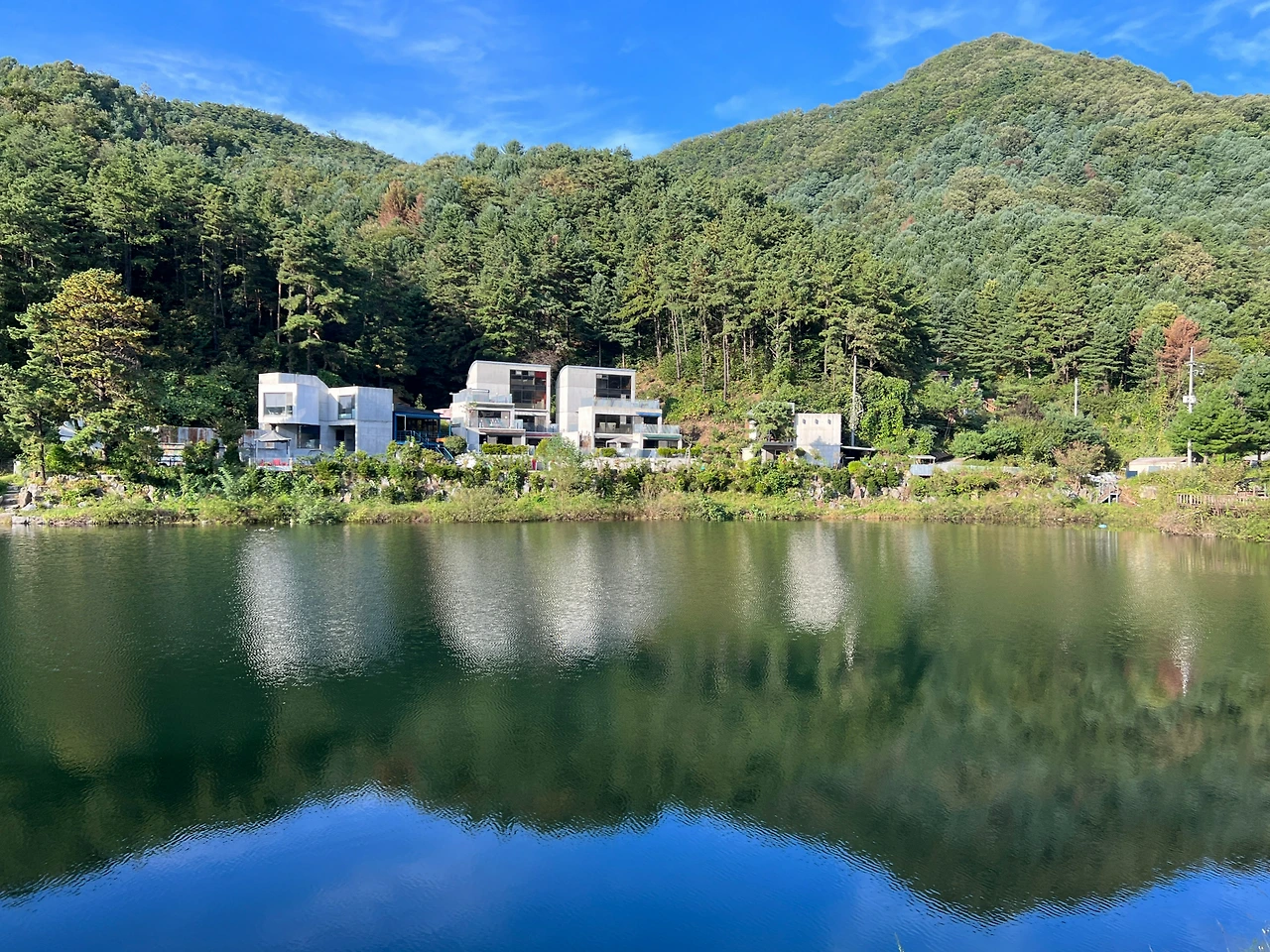 안내책자에 '전체 관람 시간 약 2시간 소요'라고 쓰여있는 포천아트밸리를 1시간 만에 해치우고는 이번 여행의 메인 스폿이자 메인이벤트가 펼쳐질 펜션으로 향했다. 펜션은 청계호수에 있었다. 청계산 아래 있어 청계호수인데 과천 청계산 말고 포천에도 청계산이 있는 줄은 몰랐다. 나중에 알게 된 사실이지만 나만 몰랐지 '청계유원지'라 해서 포천에서는 이미 유명 관광지였다.